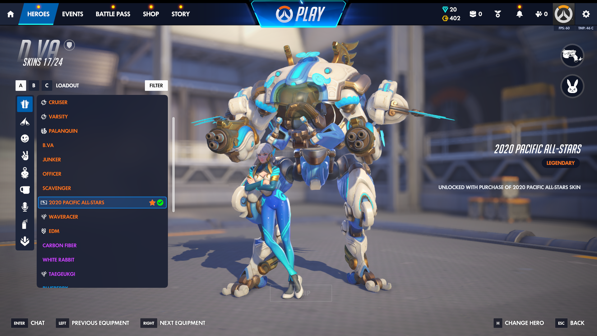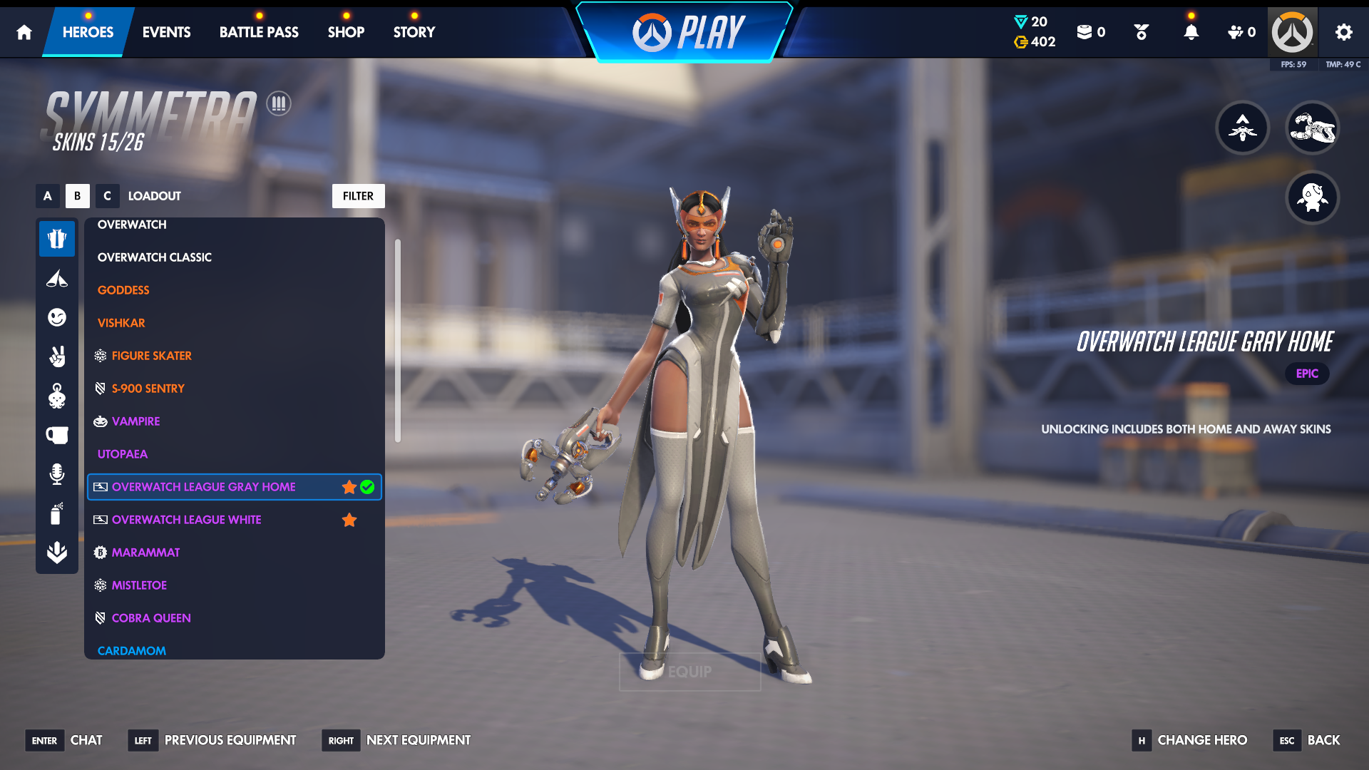 ASHE: 2 skins D.va: 1 skin symmetra : 1 skin widomaker : 2 skins mercy: 1 skin sombra: 1 skin...