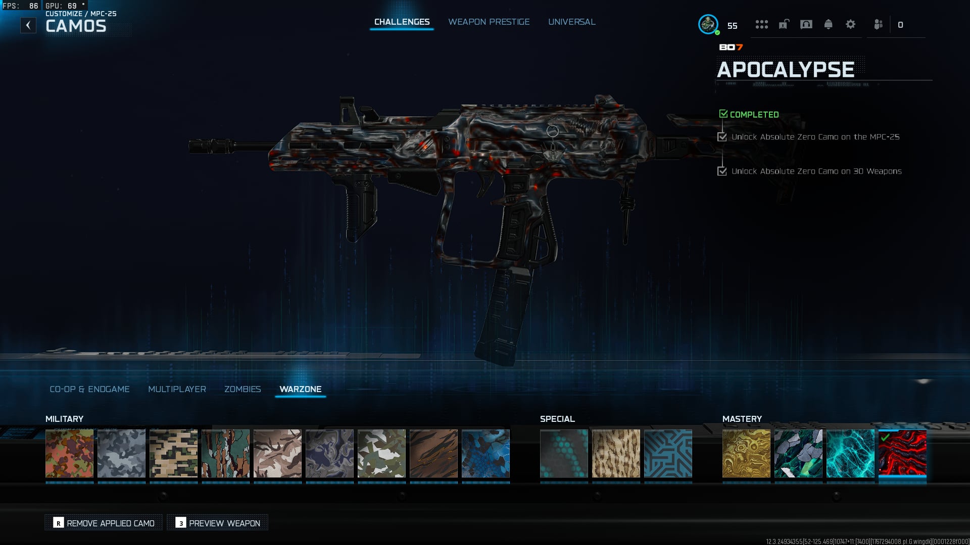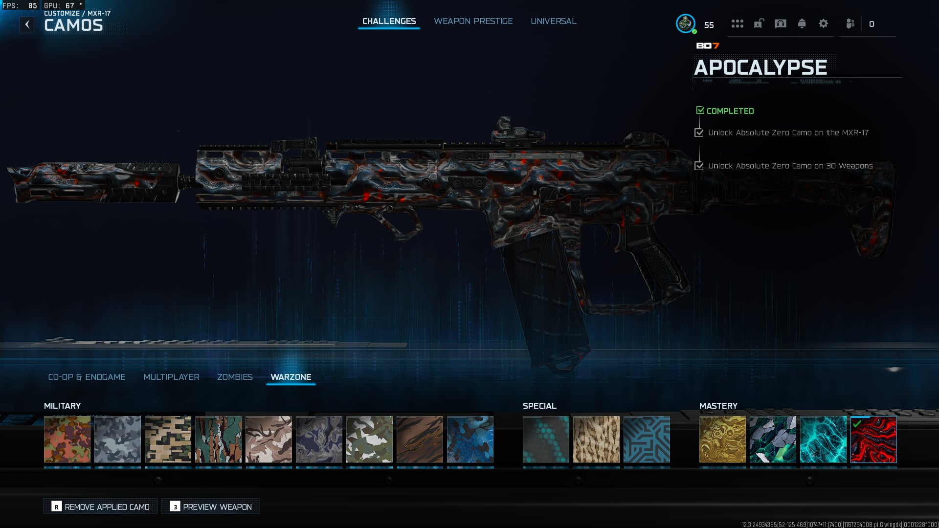 حساب Apocalypse لون الوارزون الاخير ( جهد ) - BO7 📌 ينربط على جميع المنصات: Xbox + PSN + PC 📌 مستوى برستيج 4 جاهز لبرستيج 5 لفل (55) 📌 30 كامو Apocalypse 📌 فيه توكنين تغيير اسم 📌 الحساب أساسي + كامل معلوماته 📌ضمان مدي الحياه ضد السحب 📌 كلين – ما انلعب عليه بهاك 📌 تسليم فوري 🚀