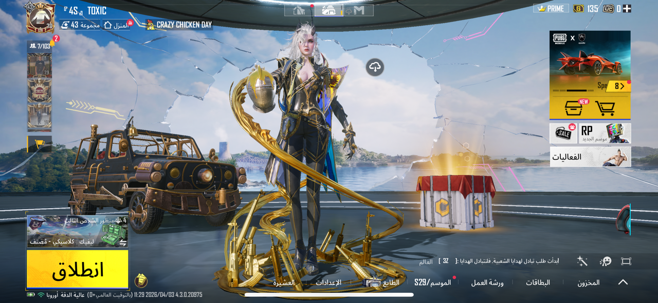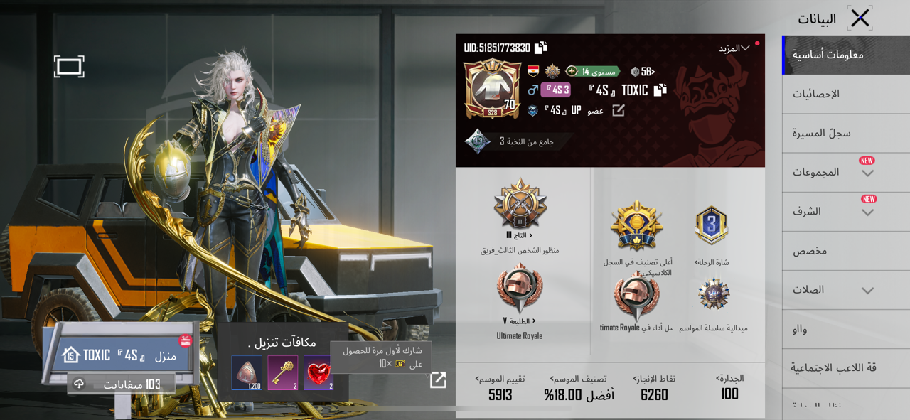 حساب ببجي لفل 61 مشحون رويال باس واعلى تقييم ايس ماستر. المميزات: سلاح ام فور ثلجي مستوى 4 اثر الاقص...