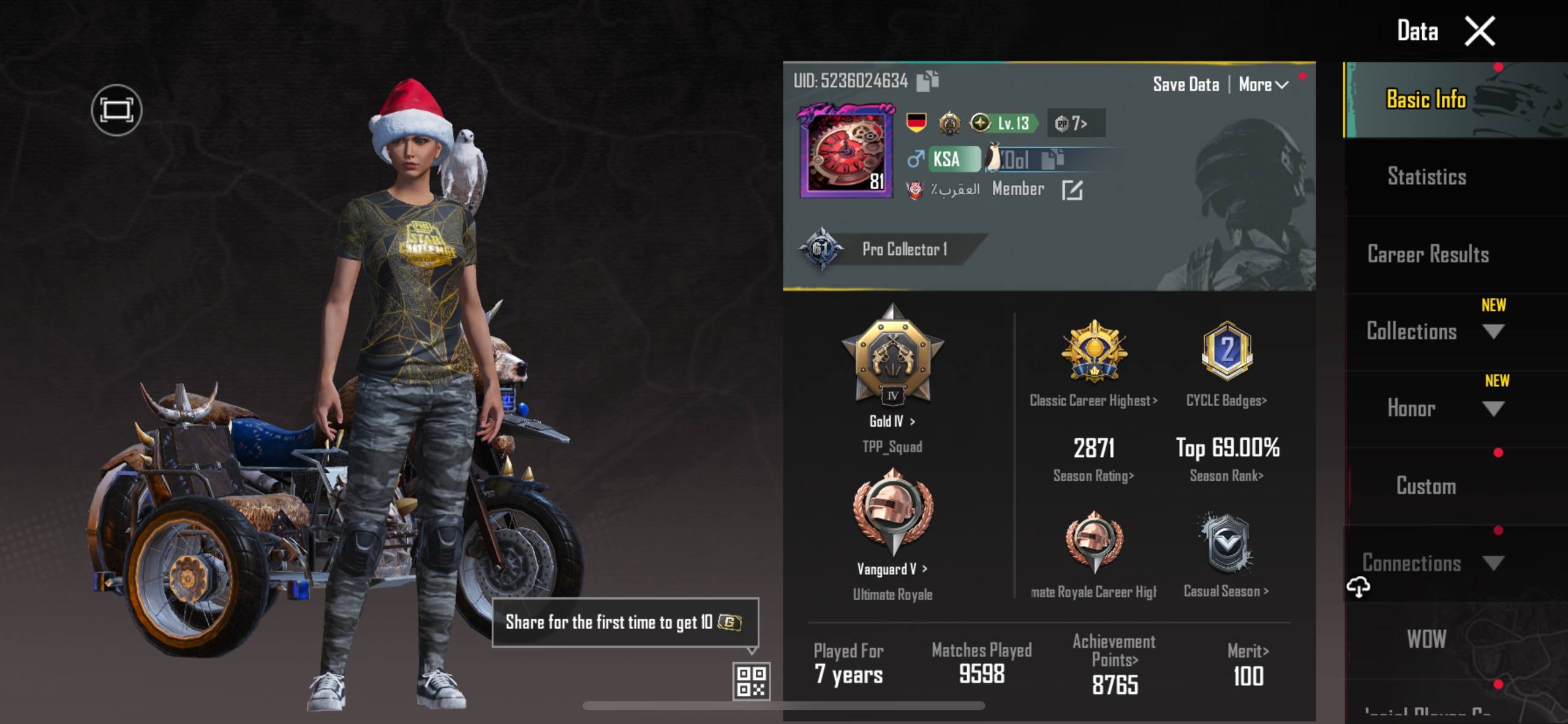 حساب ببجي العالمية 🌍 لفل الحساب 71 الحساب فيه اسلحة تتطور بعدد ممتاز امفور ثلجي كيل مسج ❄️...