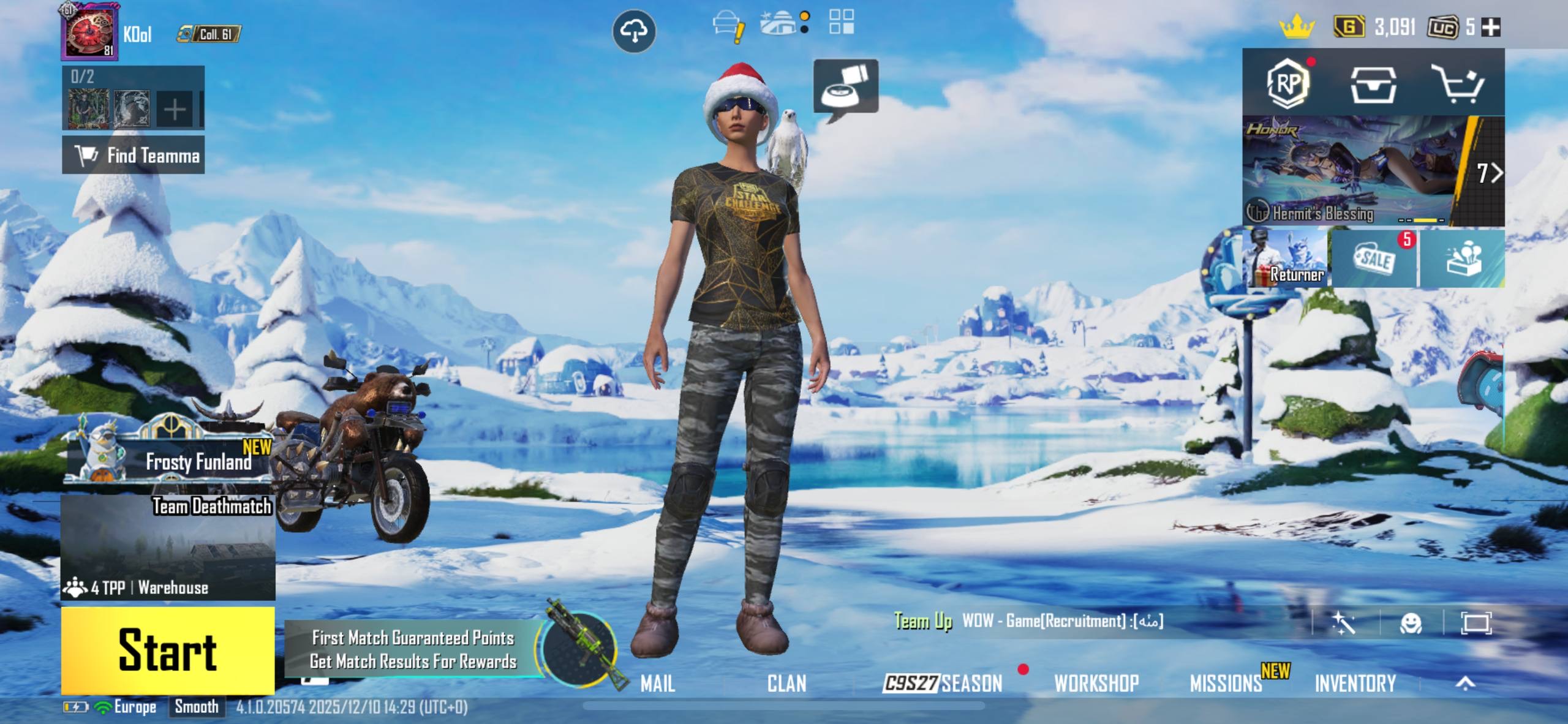 حساب ببجي امفور ثلجي كيل مسج ولفل 71