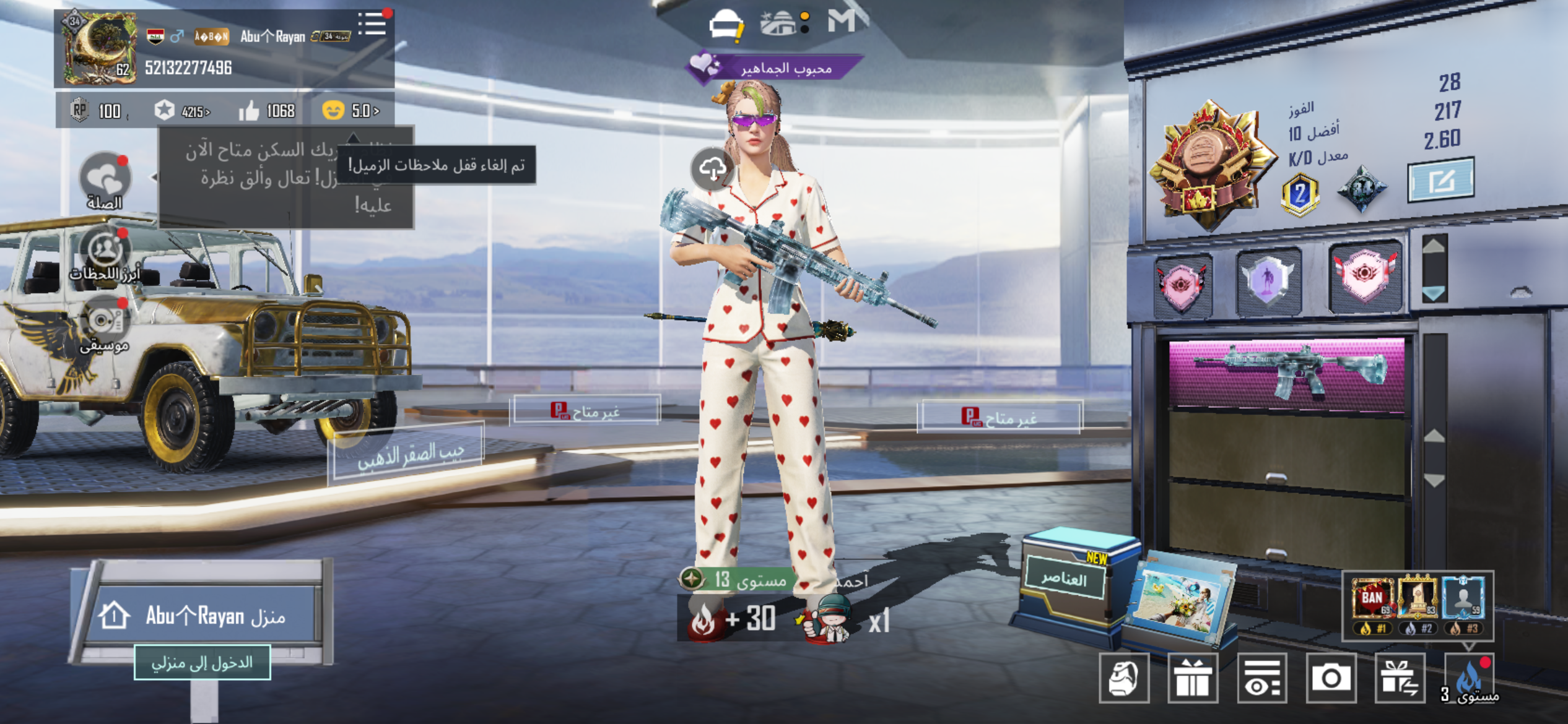 ✧ ببجي مشحون 4200 شدة ✧ مستوى 62 ✧ مستوى المجموعة 41 ✧ المثكات 26 ( اغلبها خارج الـRP ) ✧ الا...