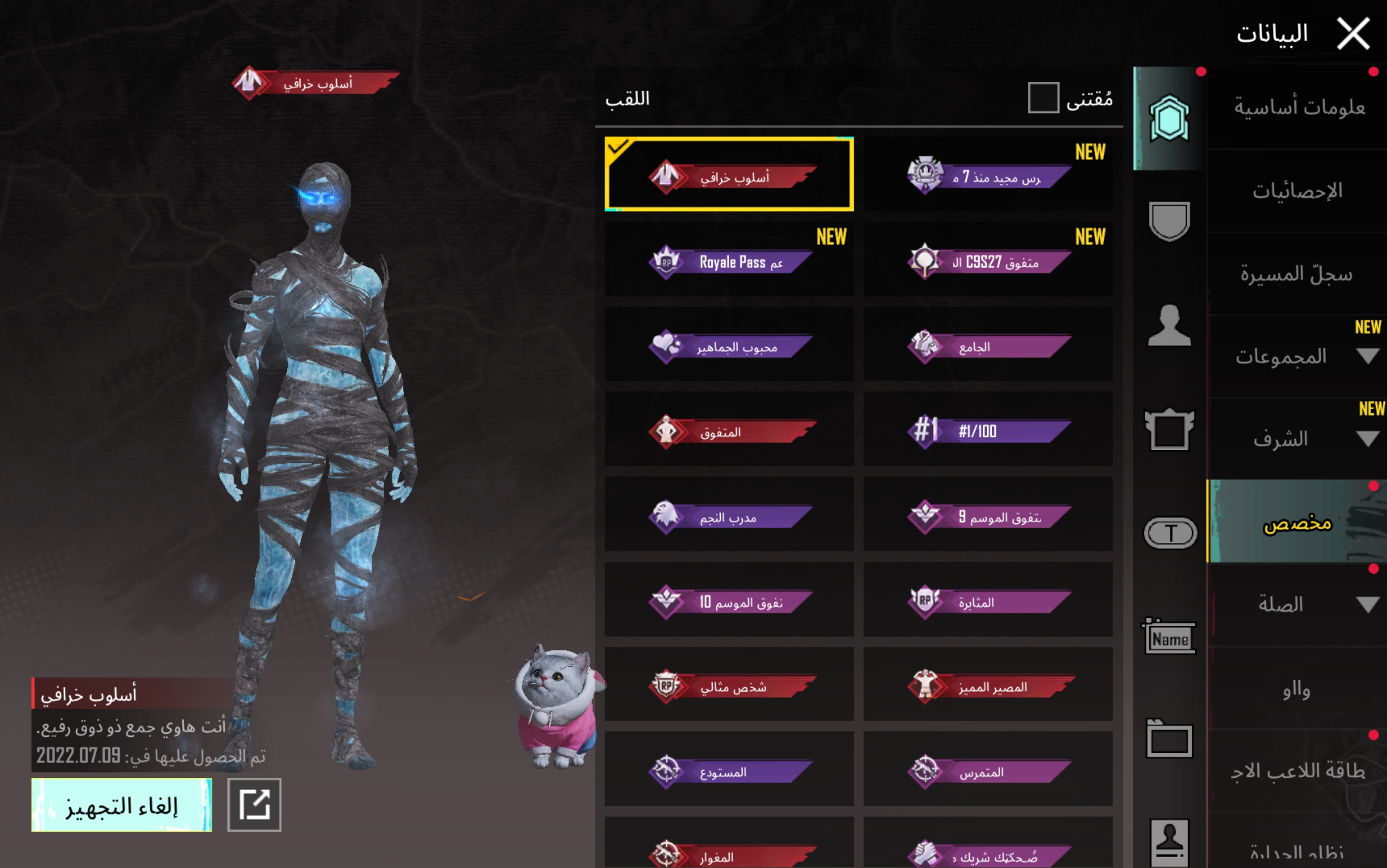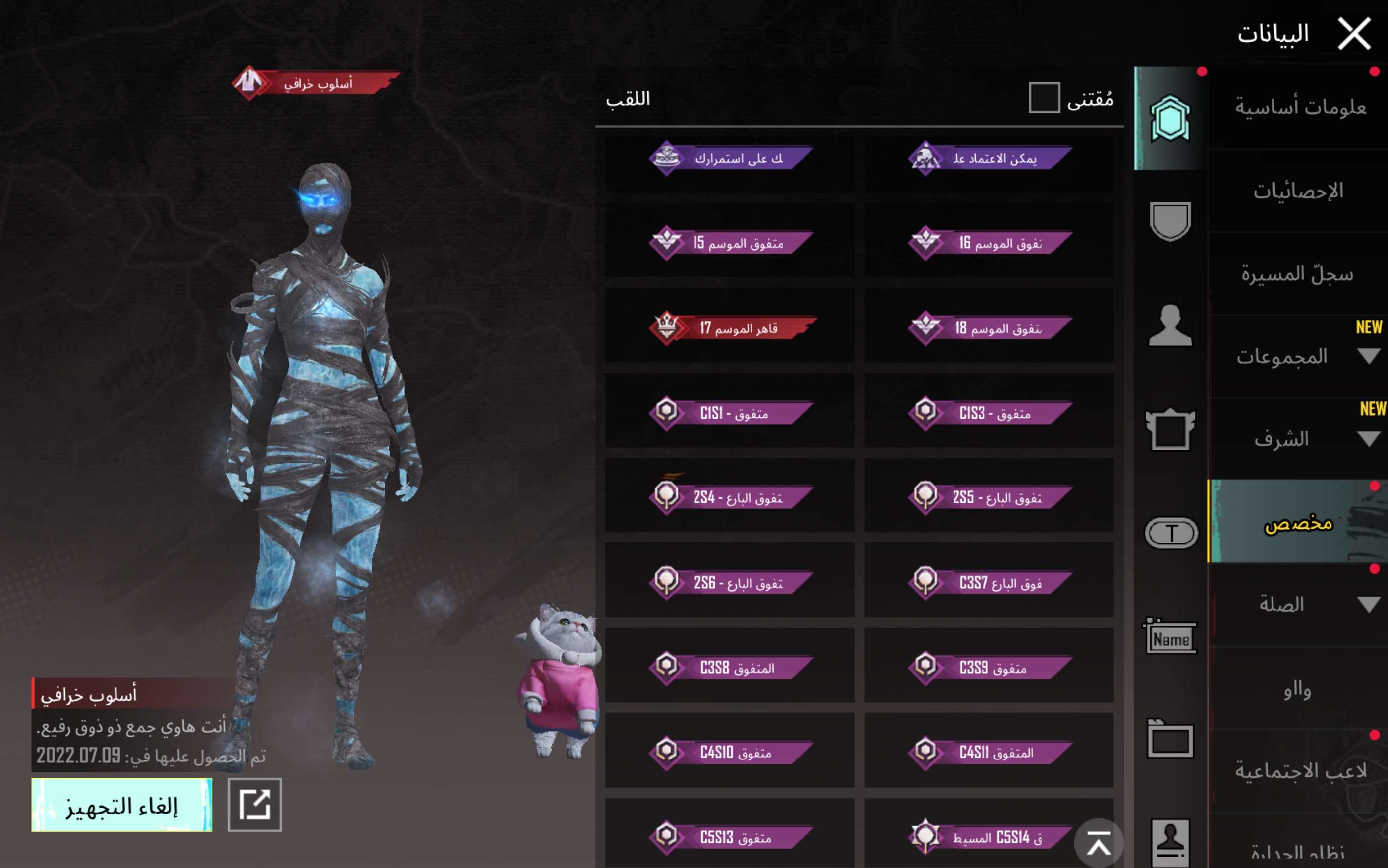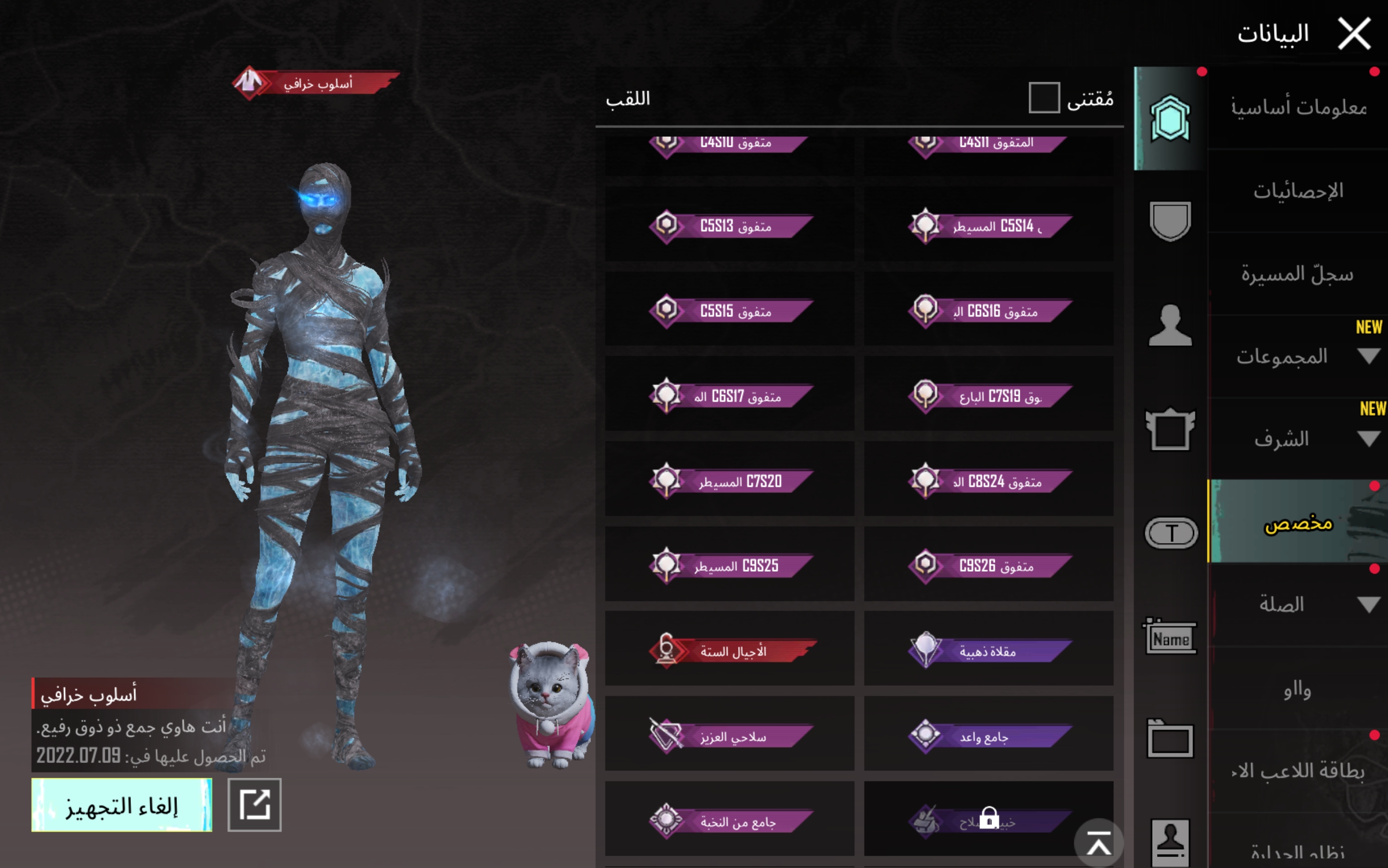 حساب ببجي ربط نظيف يتيغير حسب الطلب مضمون ماعلية مشاكل ، مستوى 82 ، بدلة مومياء ثلجية ، امفور المومياء لفل 6 ، بدلات اكس العدد 2 ، اسلوب خورافي ، إطار كونكر موسم 17 ، ميتيريال العدد 6 , رومات العدد 75 اسبوعي عدد 40 يومي عدد 35 , شعبية 5 مليون ، من أفضل الحسابات داخل منصة يوزر