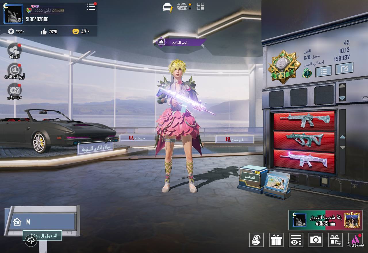 حساب فخم لفل ٦٤ فيه ٨٤ بدلة وسكنات كثيرة ويو ام بي مطورة ماكس و ام سفن مطورة لفل ١ و اوزي مطورة لفل...