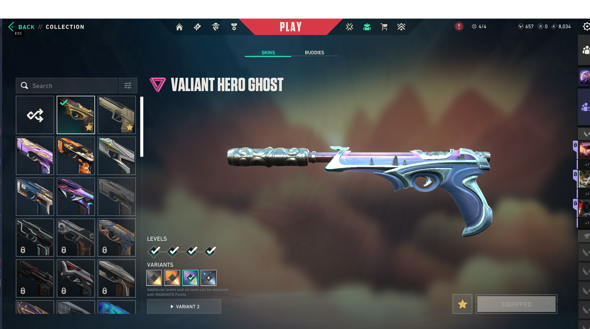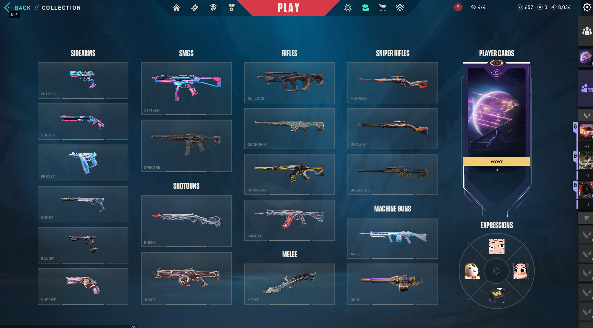 اغلب السكنات المطلوبه موجوده Weapon Skins: Vandal: 14 skins Phantom: 8 skins Knife: 8 skin...