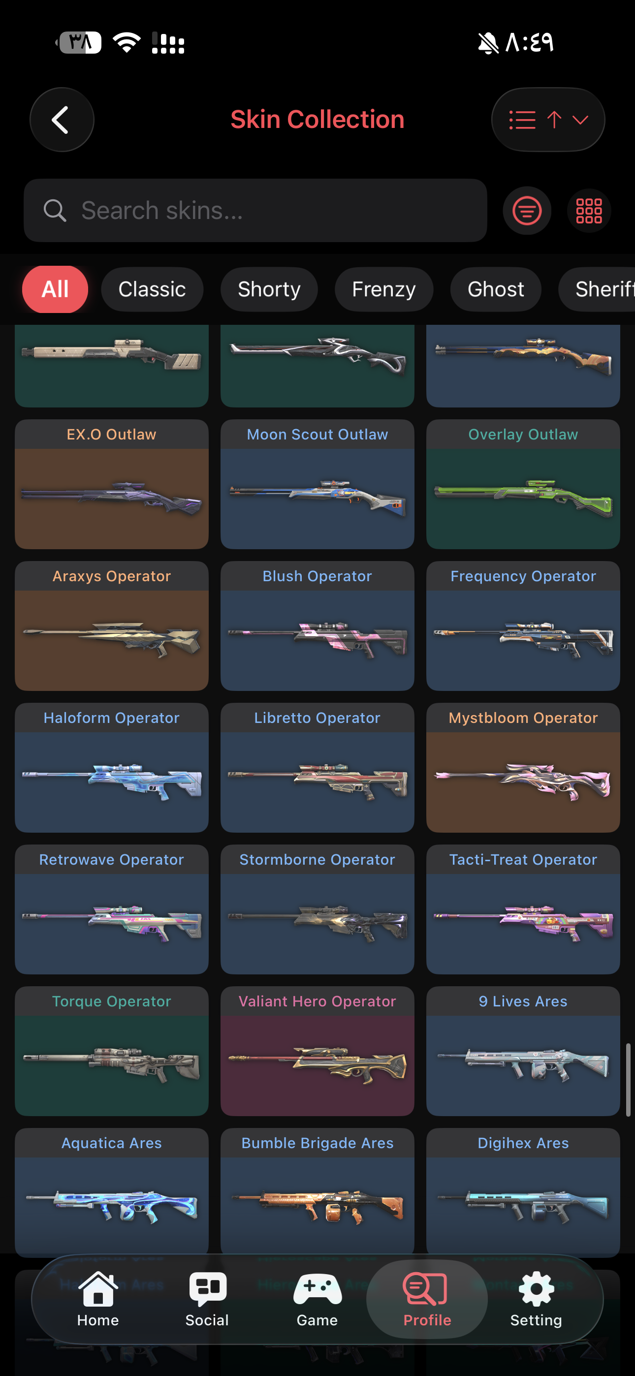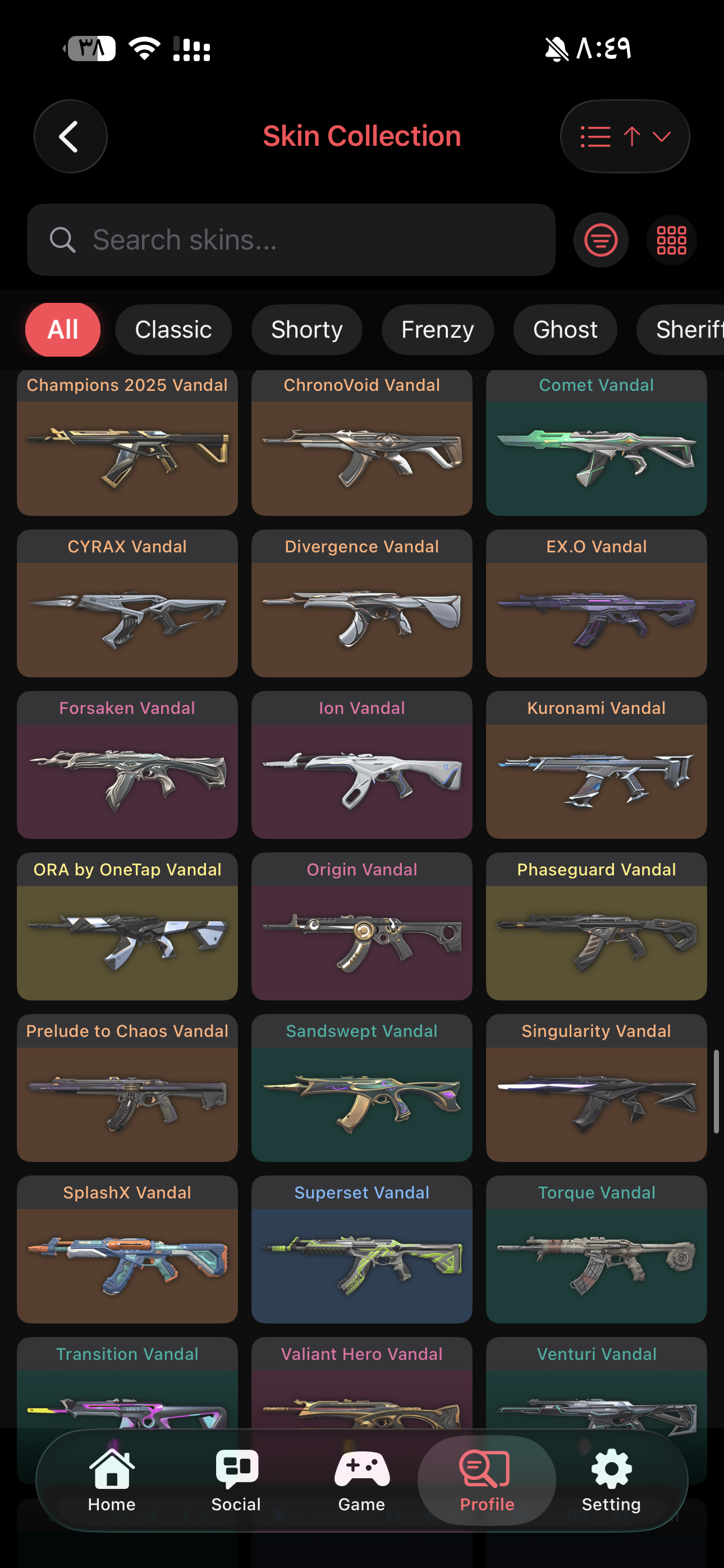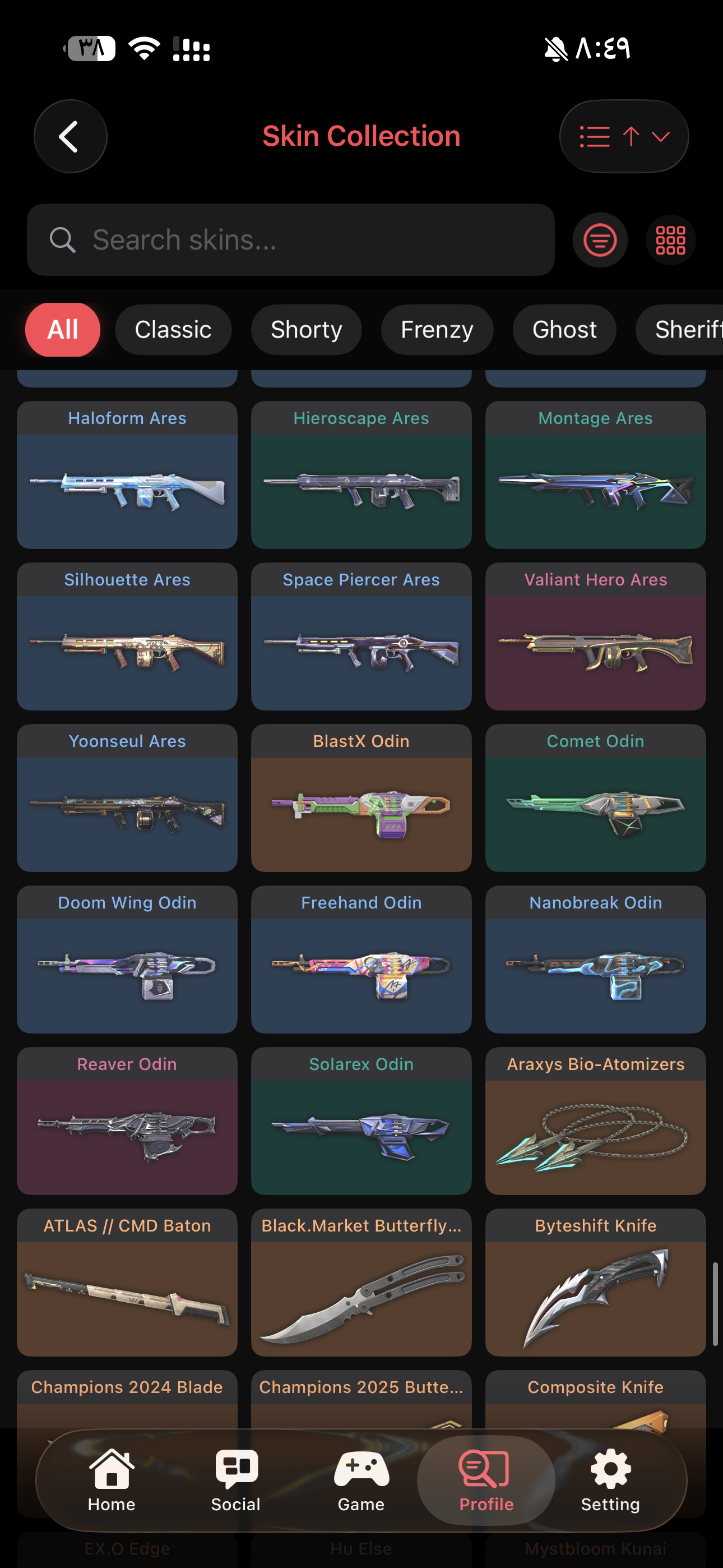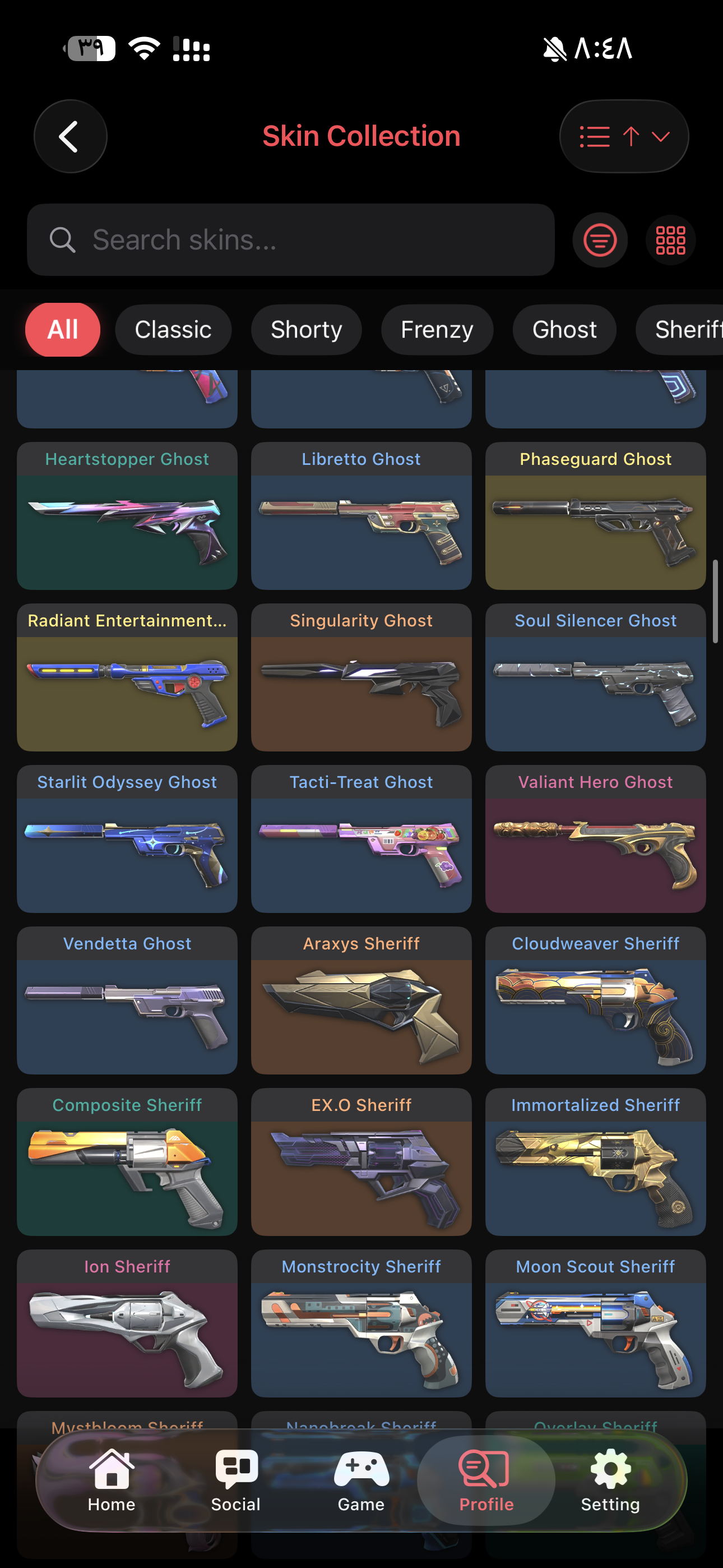 فيه 299 سكن وفيه 235 قن بودي اهم السكنات Oni Phantom Ion Vandal Ion Sheriff ChronoVoid Vandal Reaver Vandal Reaver Odin Prelude to Chaos Vandal Reaver Sherif Kuronami Vandal Forsaken Vandal RGX 11z Pro Vandal Origin Vandal Champions 2023 Vandal Singularity Phantom الحساب تركي دافع على الحساب 4000+