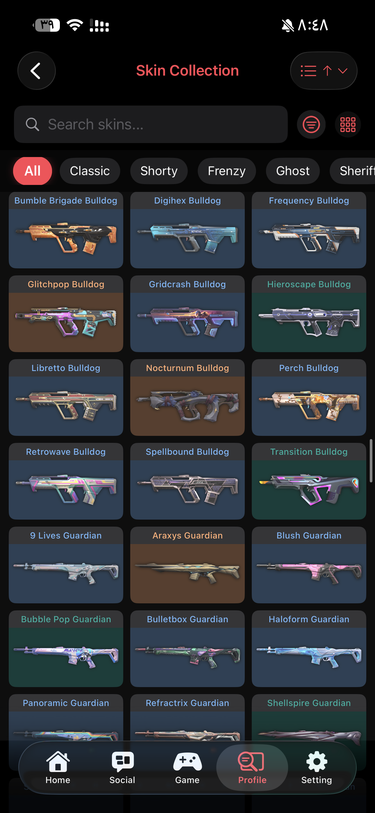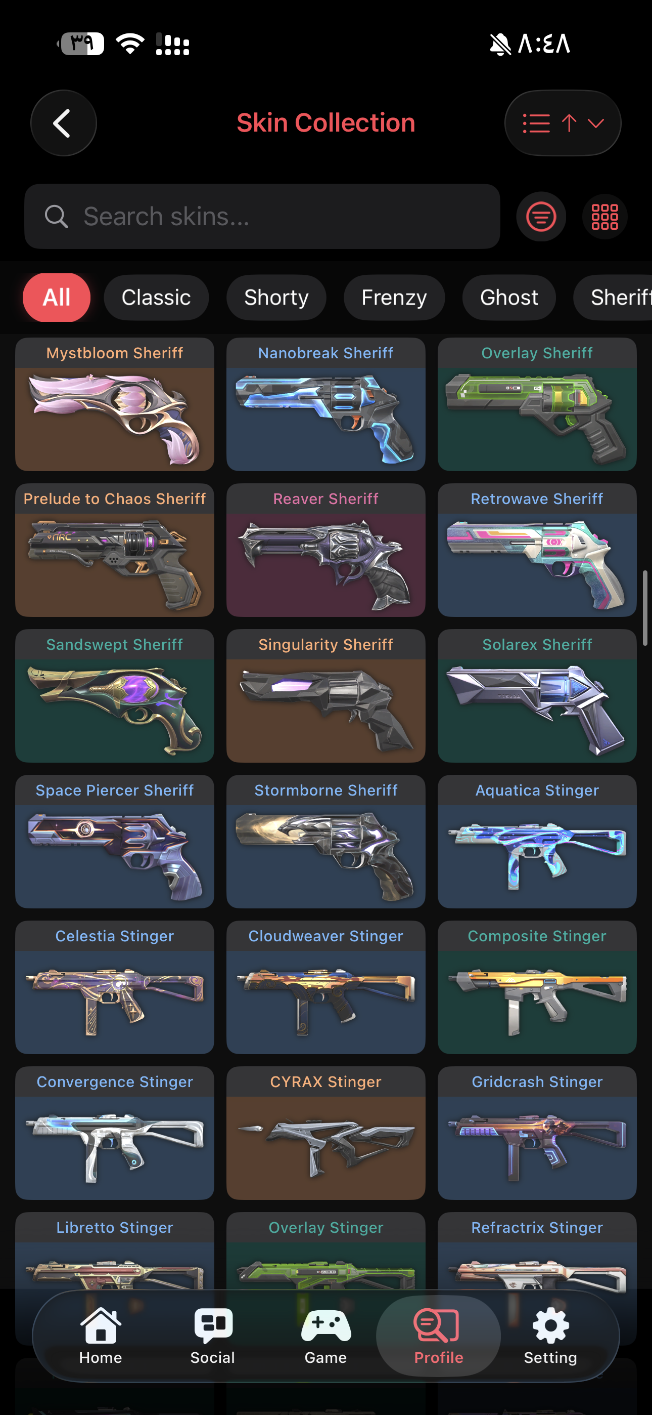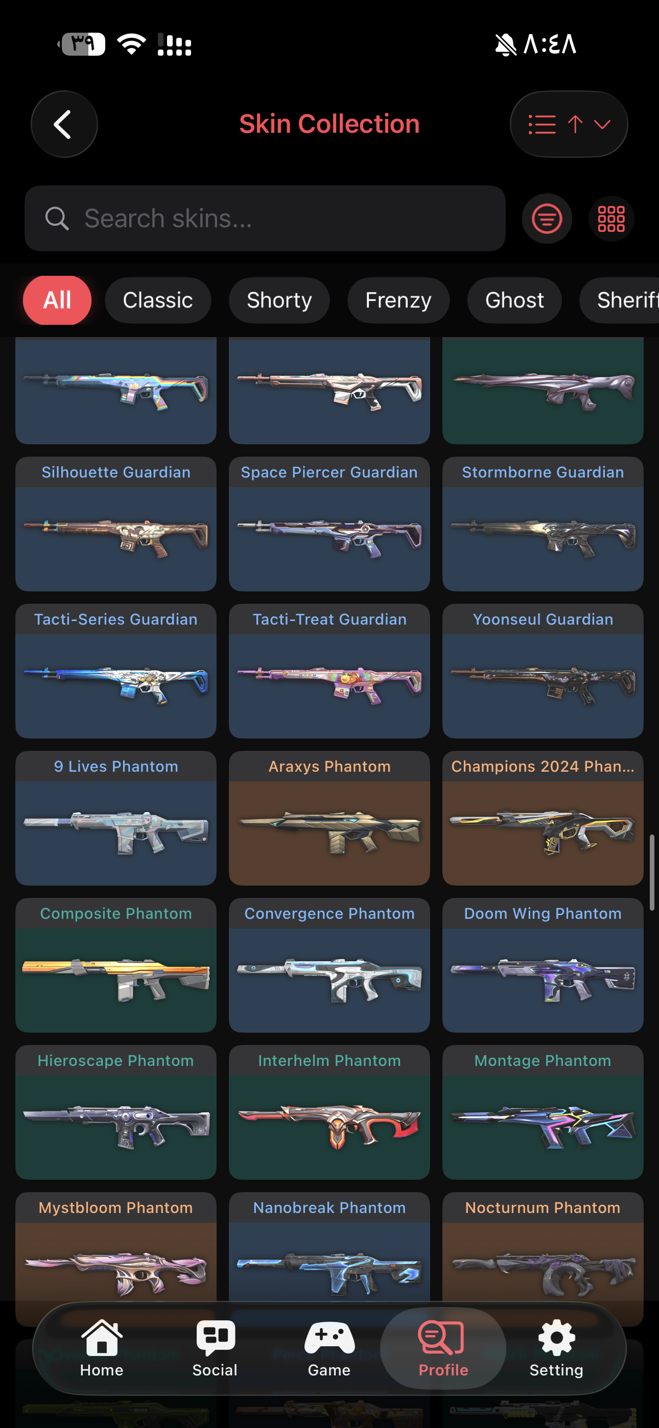 اغلب السكنات المطلوبه موجوده Weapon Skins: Vandal: 14 skins Phantom: 8 skins Knife: 8 skin...