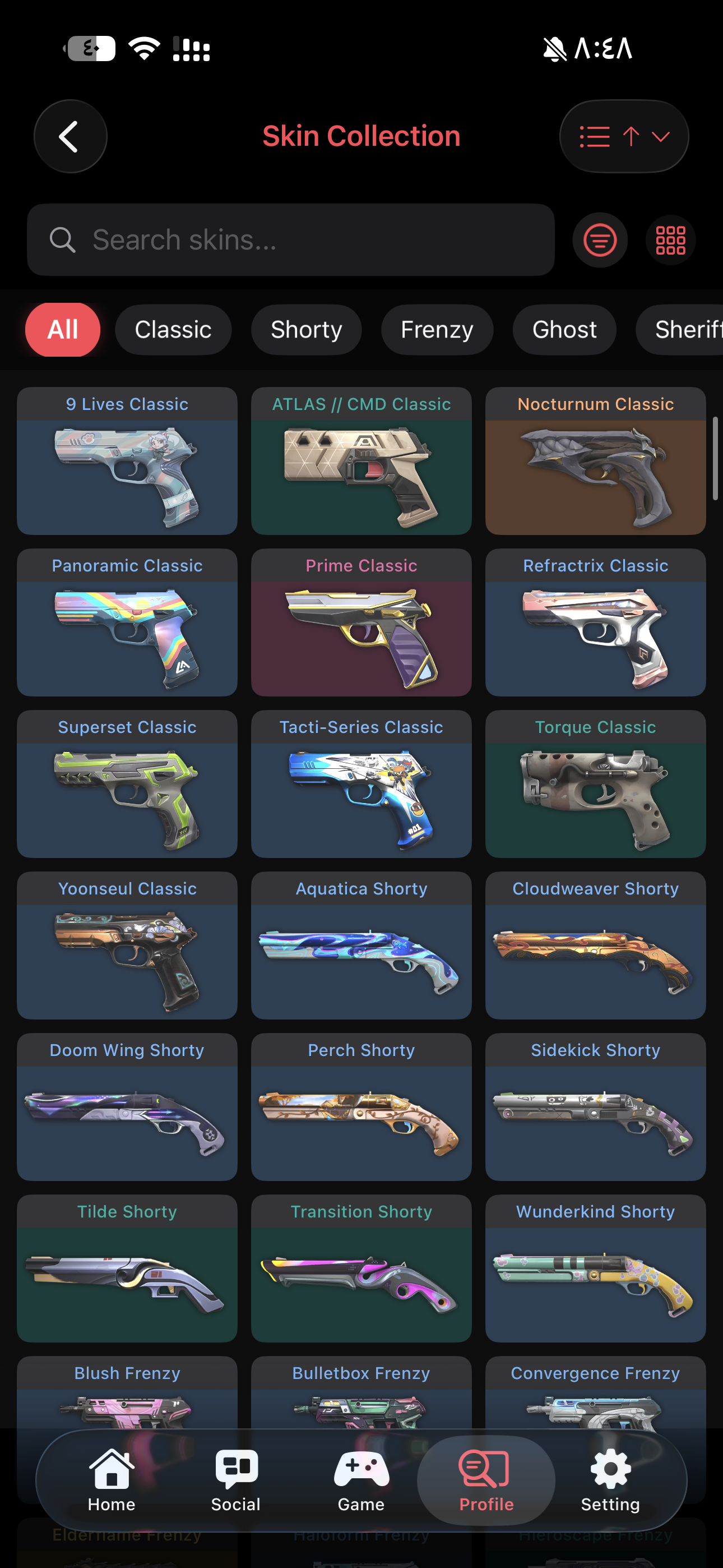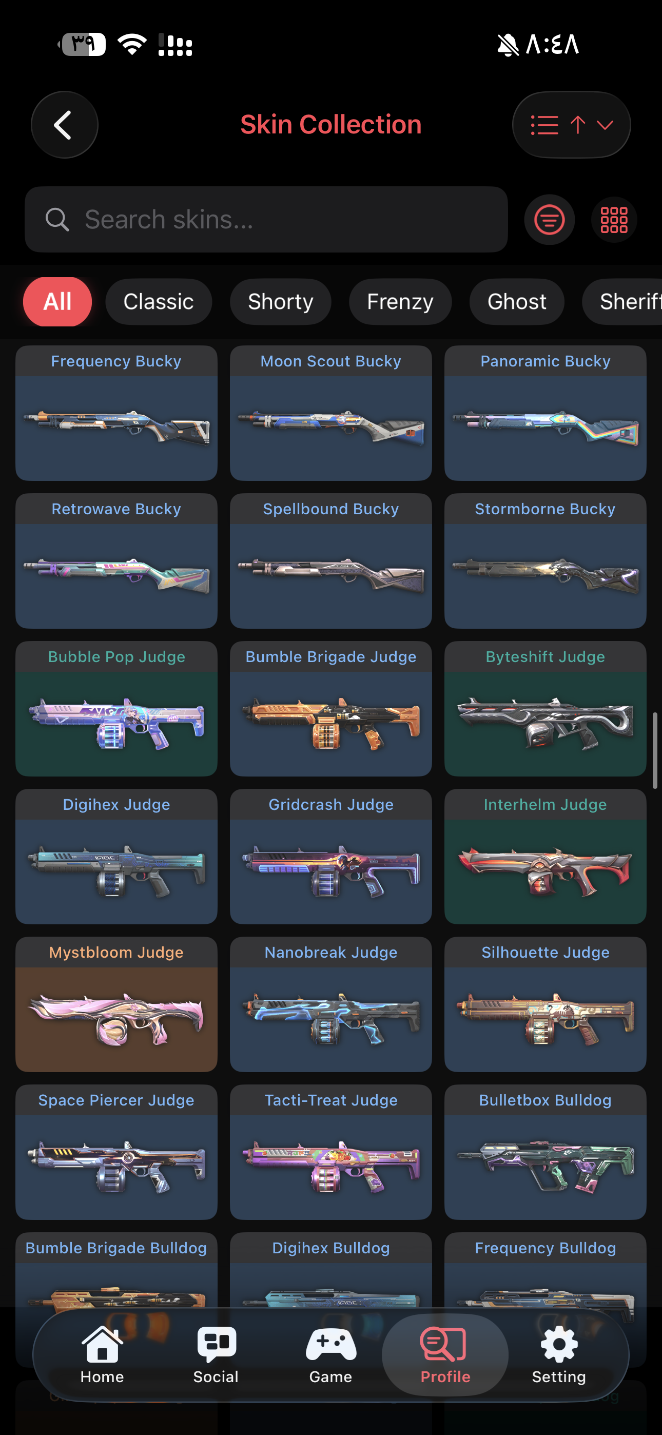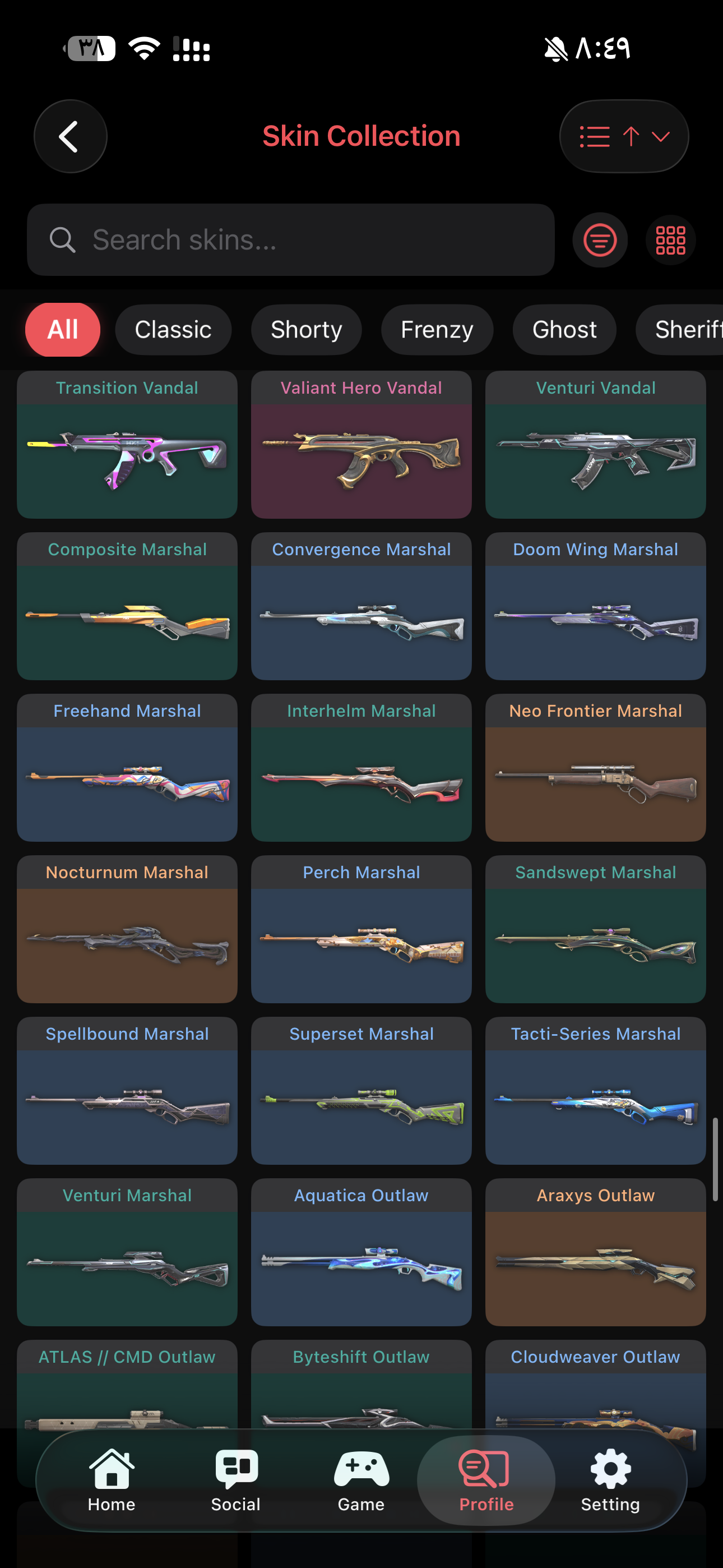 اغلب السكنات المطلوبه موجوده Weapon Skins: Vandal: 14 skins Phantom: 8 skins Knife: 8 skin...