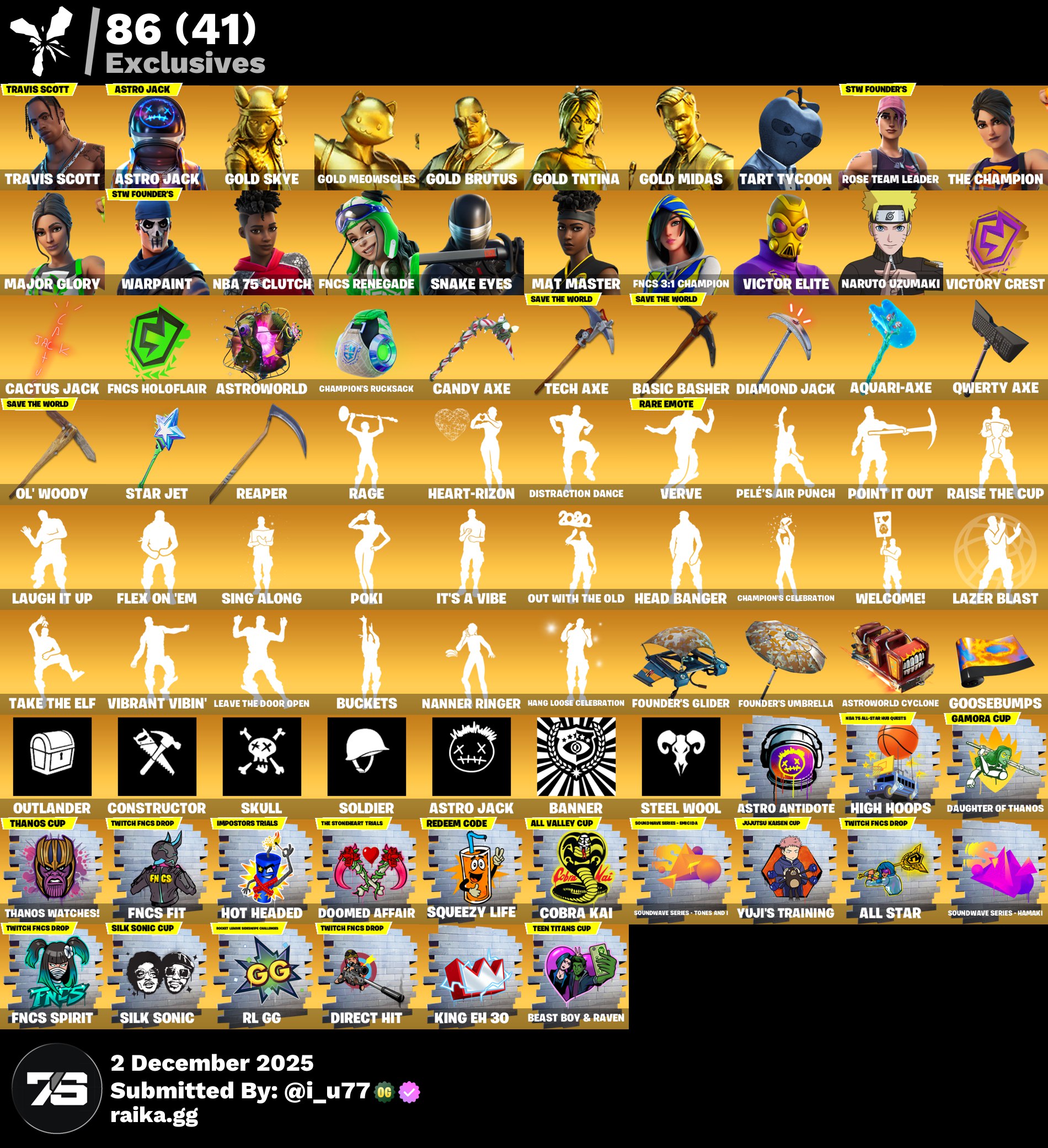 [PC] 276 skins | Travis Scott + Astro Jack + Gold Midas + Gold Meowscles + Gold Brutus + Subzero Cry...