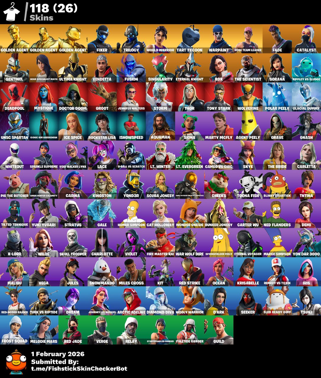 السلام عليكم عندي حساب فورت نايت عرق فيه مضلة ترافس سكوت واسكنات عرق فل اكسس بس ناسي الجيميل تقدر تخ...