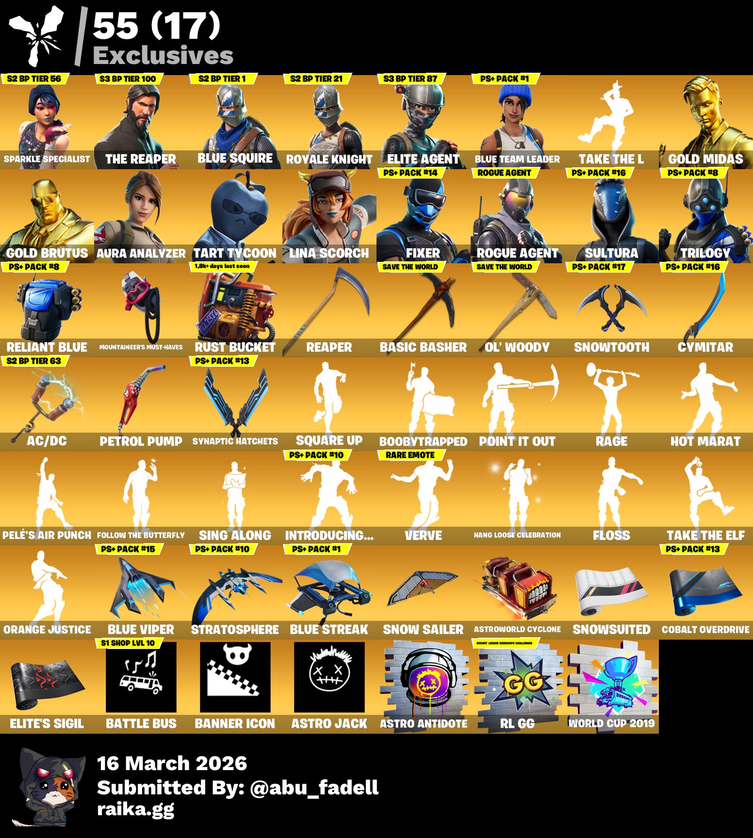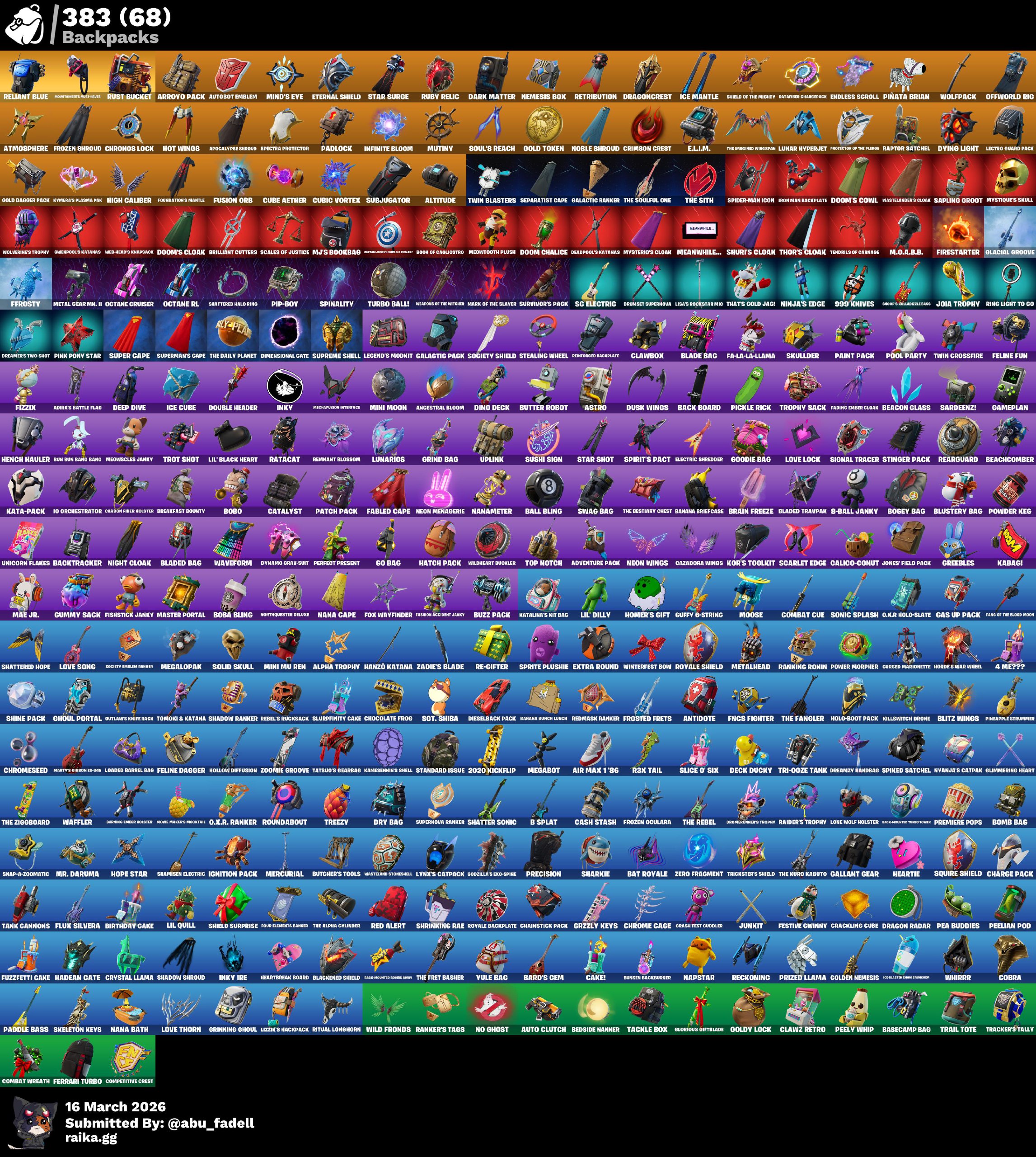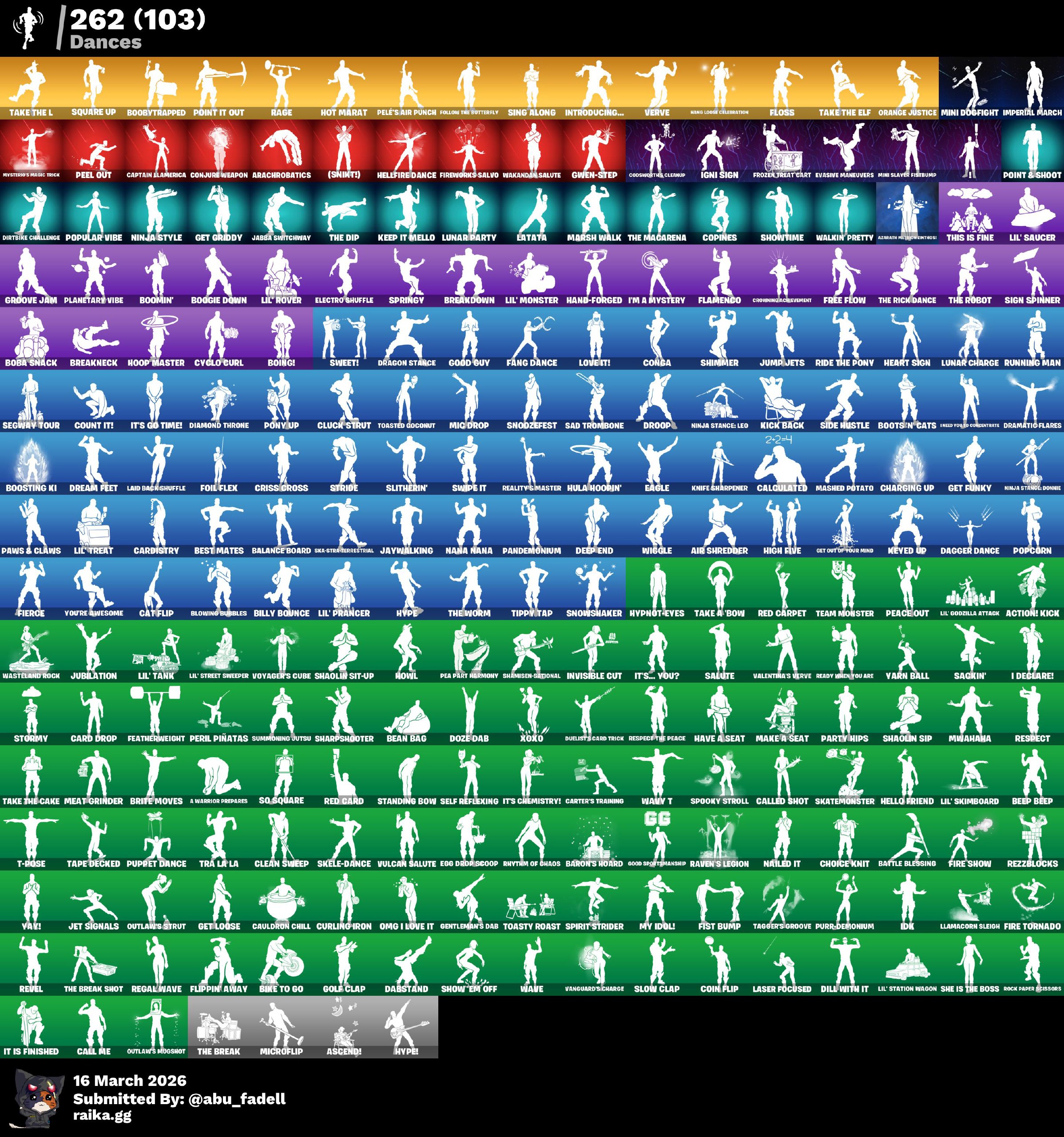 حساب نادر وفيه رقصات نادره وفيه سمكه البطوله وكرة القدم الامريكيه وفيه طور الزومبي يعني فيبوكس لا نه...
