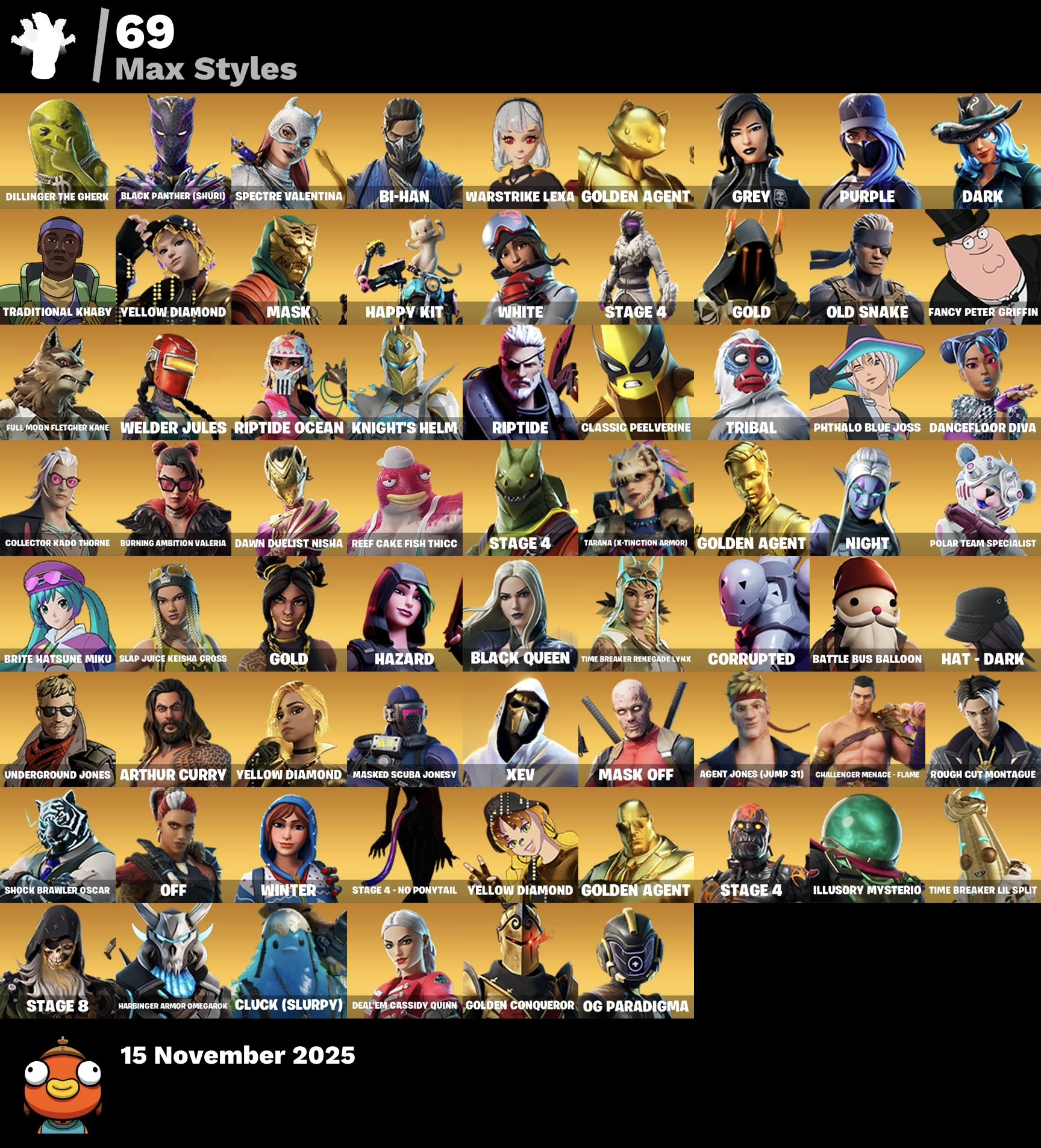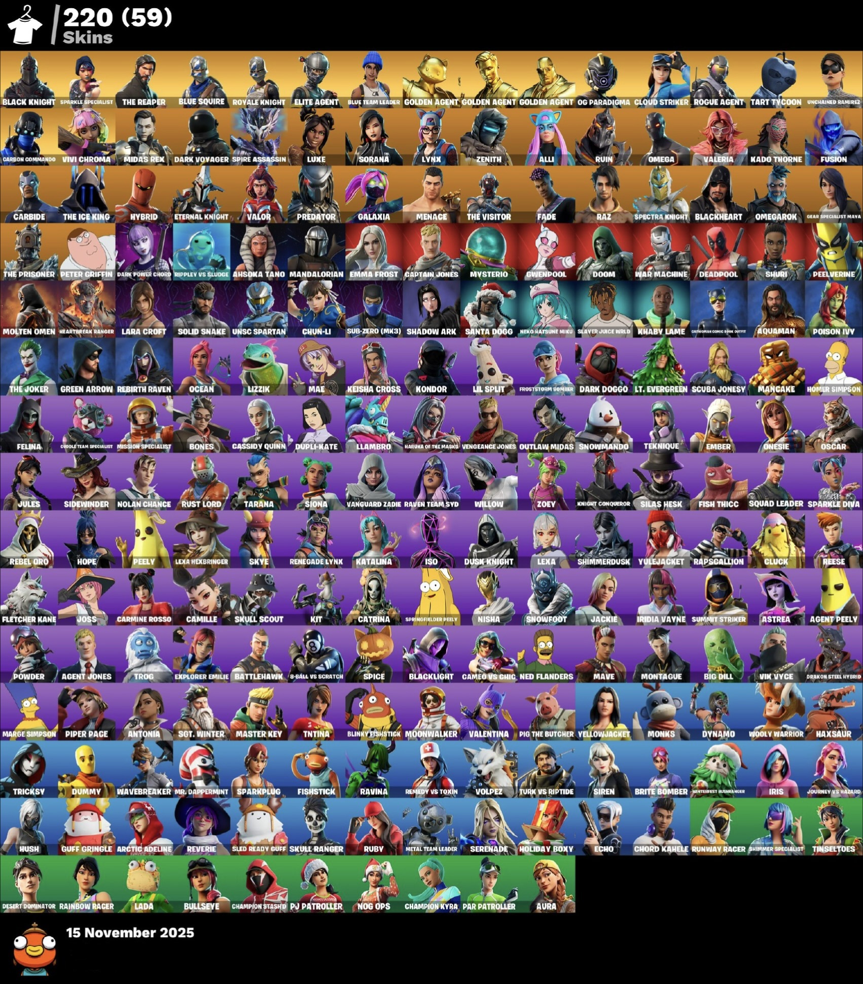 حساب فورت نايت فيه السيزون ٤ وانت طالع وفيه كريتوس واكس كريتوس ورقصات قويه و جون ويك و فيه 243سكن سك...