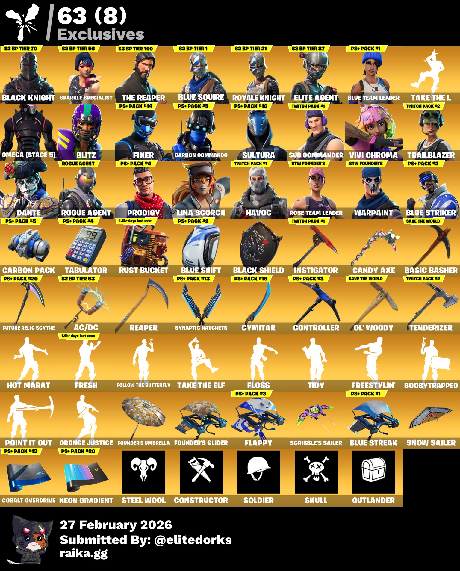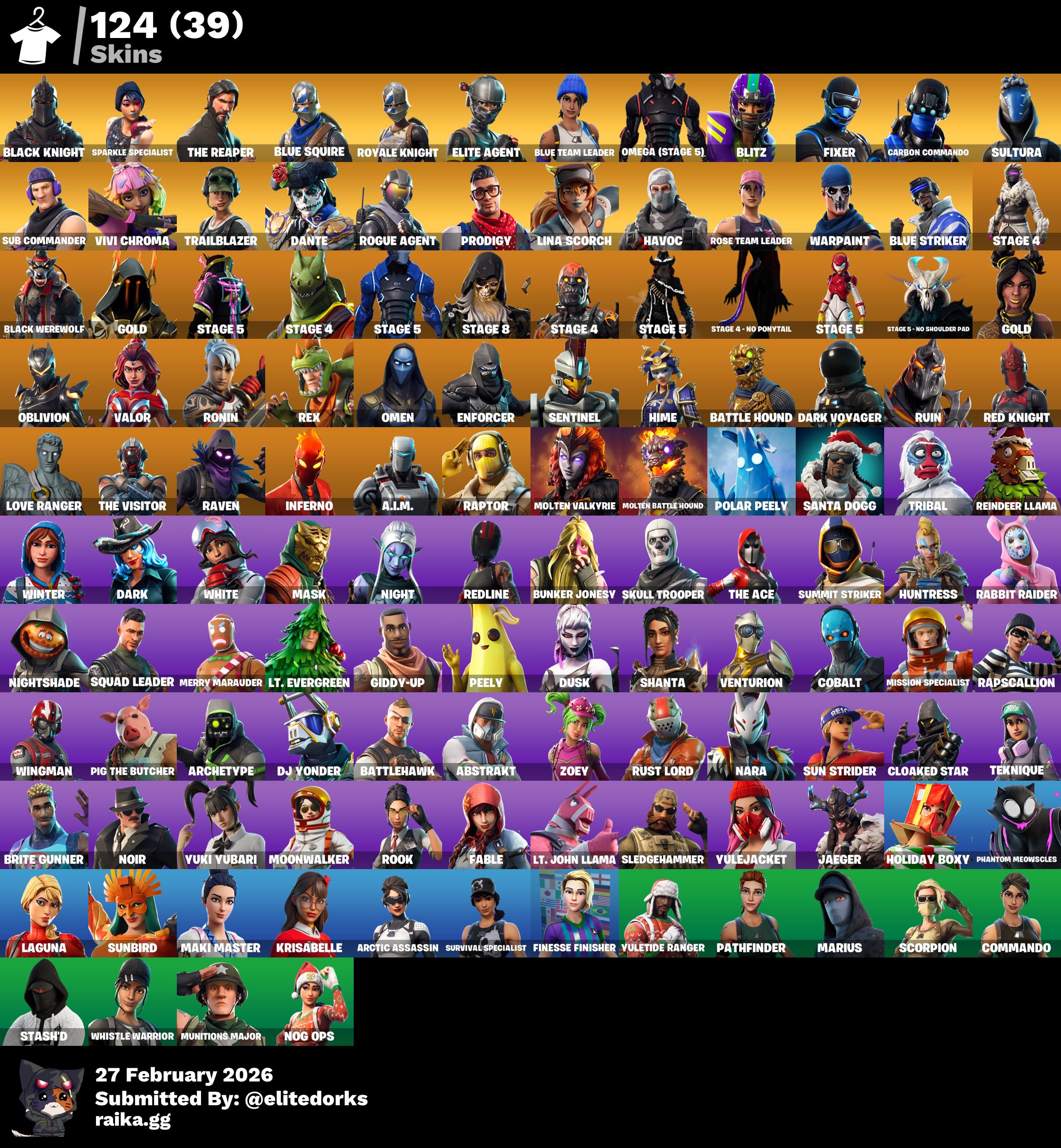 حساب فورت نايت سكن ترافيس سكوت فيه طور الزومبي القديم + 129 سكن +الرقصات 124 + الآكسات 92 + الفيبو...