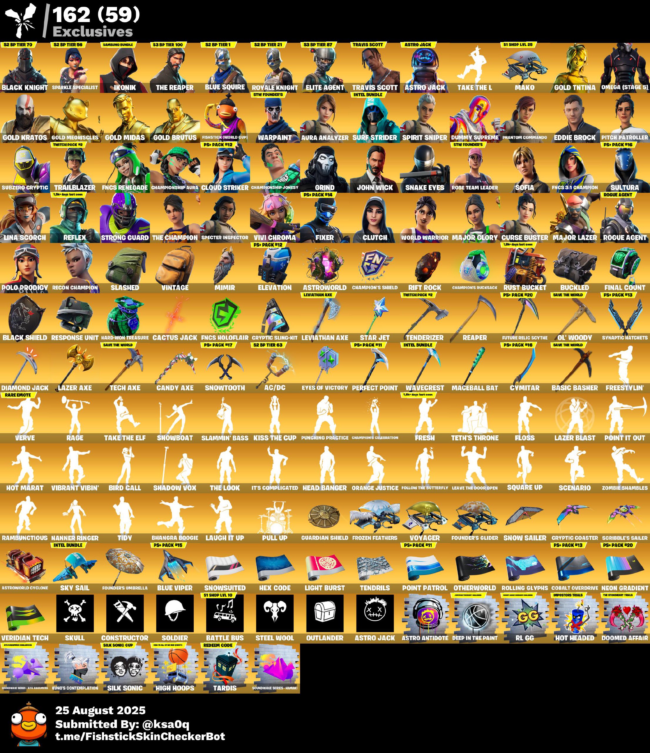 اولاً الحساب حسابي الشخصي ومضمون من السحب وكل الي فيه من تعبي انا ،،،،، فورت نايت ٢٤٧ سكن واغلبها سك...
