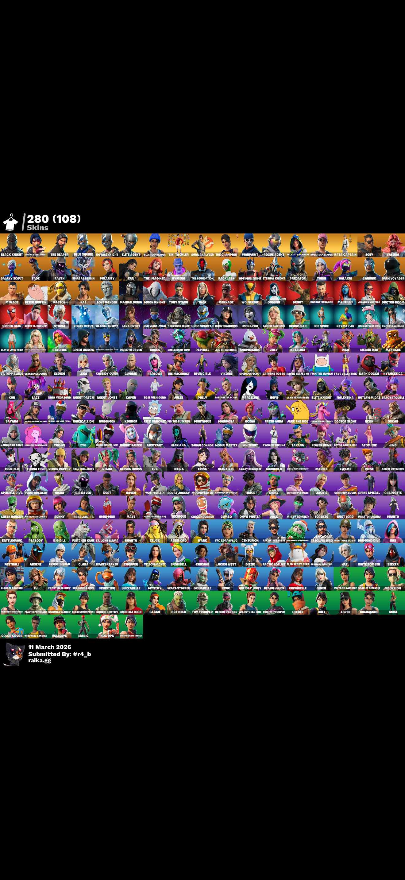 حساب فورتنايت أسطوري من السيزونات الأولى (OG)، الحساب مليان نوادر ومقطوعات صعب تحصلها في حساب واحد. مثالي جداً للاستخدام الشخصي أو الاستثمار. 🔥 أهم النوادر (Skins): • بلاك نايت (Black Knight): سكن السيزون الثاني النادر (الشيخ). • جون ويك الأصلي (The Reaper): سكن السيزون الثالث. • سكنات السيزون الثاني كاملة: (Blue Squire, Royale Knight). • سكنات نادرة: Elite Agent, Rogue Agent. ⛏️ الفؤوس النادرة (Pickaxes): • فأس الليفايثن (Leviathan Axe): فأس كريتوس المقطوع لأكثر من 1790 يوم! • فأس AC/DC: فأس السيزون الثاني النادر. • فأس Candy Axe: فأس الكريسماس الشهير. 💃 الرقصات الأيقونية (Emotes): • رقصة الفلوس (Floss): أندر رقصة في اللعبة. • رقصة Take The L: رقصة الاستفزاز الأصلية. • نوادر إضافية: رقصات مقطوعة لأكثر من 1000 يوم (مثل Laugh It Up). إحصائيات عامة: • عدد السكنات: 280 سكن. • عدد الفؤوس: 267 فأس. • الشنط: 321 شنطة (منها درع البلاك نايت Black Shield).