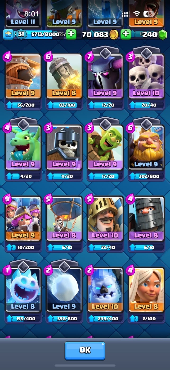 حساب كلاش رويال لفل 30والساحه 14 العب فيه ٧ سن...