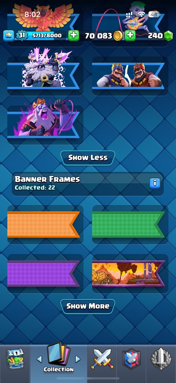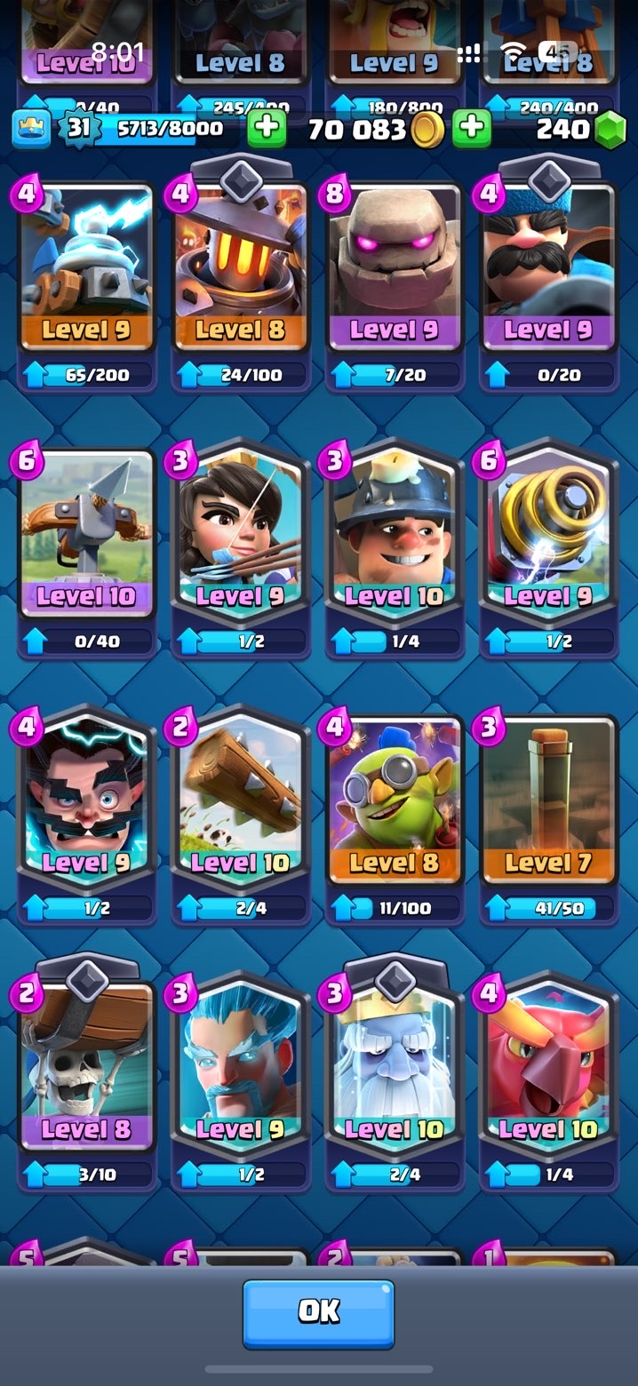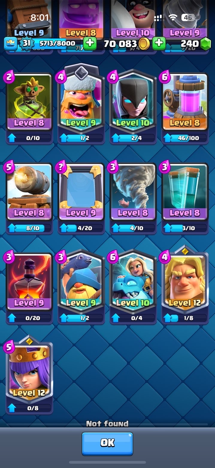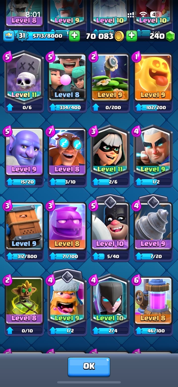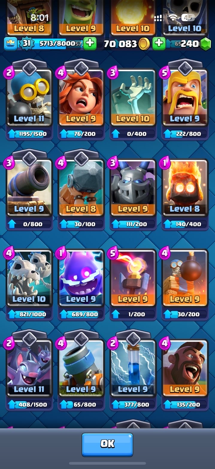 حساب كلاش رويال 1m كوينز 870+ جوهره يحتوي على اندر انجاز فاللعبه ( لعب كلاش رويال لمده 8 اعوام...