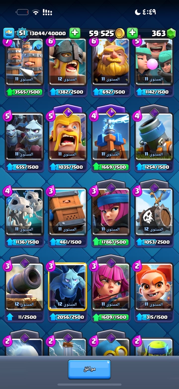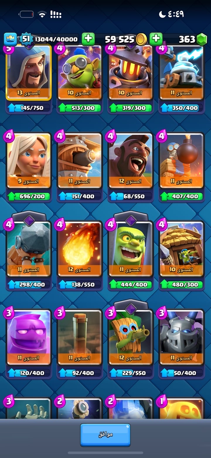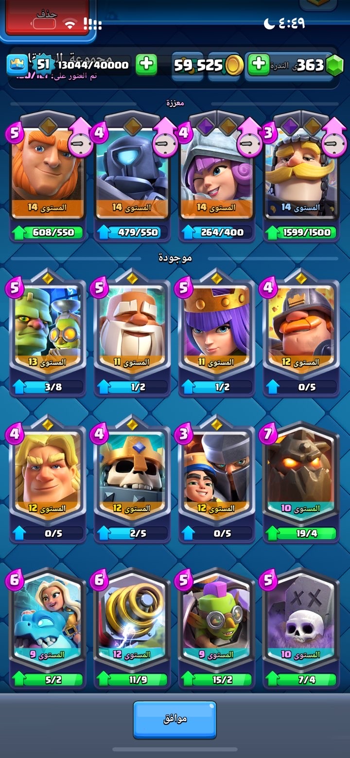 كؤوس الحساب 4600 و البطايق كلها موجوده الا12 وفيه 725 جوهره والفلوس 428645
