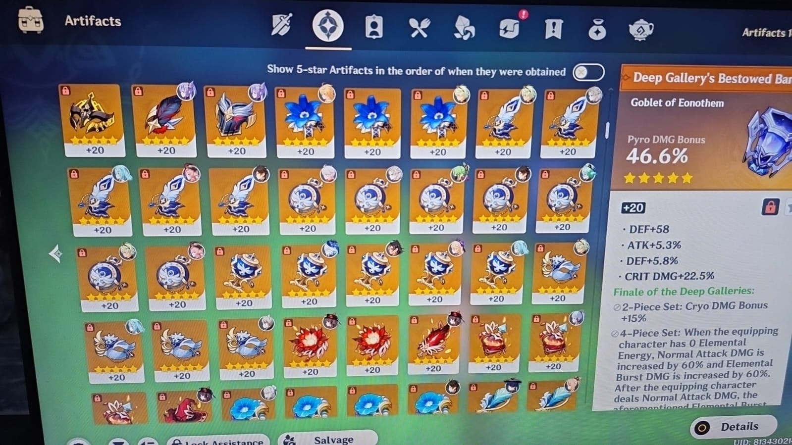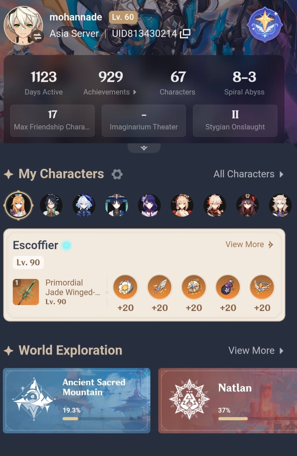 السيرفر ASIA 🔹 مستوى المغامر AR60 🔹 إجمالي الشخصيات 67 شخصية بما في ذلك جميع شخصيات الدعم الأساسية ⭐⭐⭐⭐ 🔹 إجمالي عناصر ⭐⭐⭐⭐⭐ عددها 44 (شخصيات + أسلحة) 🔹 أبرز الشخصيات والأسلحة ⭐⭐⭐⭐⭐ Xiao C1 + Primordial Jade Winged-Spear R2 Kaedehara Kazuha C1 Zhongli C1 Hu Tao + Staff of Homa Xianyun + سلاحها المميز Kamisato Ayaka Furina Raiden Shogun Chiori Yoimiya Wanderer 🔹 الحساب يحتوي على Artifacts قوية ومبنية بعناية للشخصيات الأساسية سواء DPS أو Support وجاهز لتحديات نهاية اللعبة مثل Spiral Abyss و Imaginarium Theater 🔹 الأمان الحساب آمن بنسبة 100% وجاهز للنقل للمالك الجديد بدون أي مشاكل 💎 حساب قوي ومناسب لمن يريد دخول المحتوى المتقدم مباشرة دون الحاجة لبناء طويل.