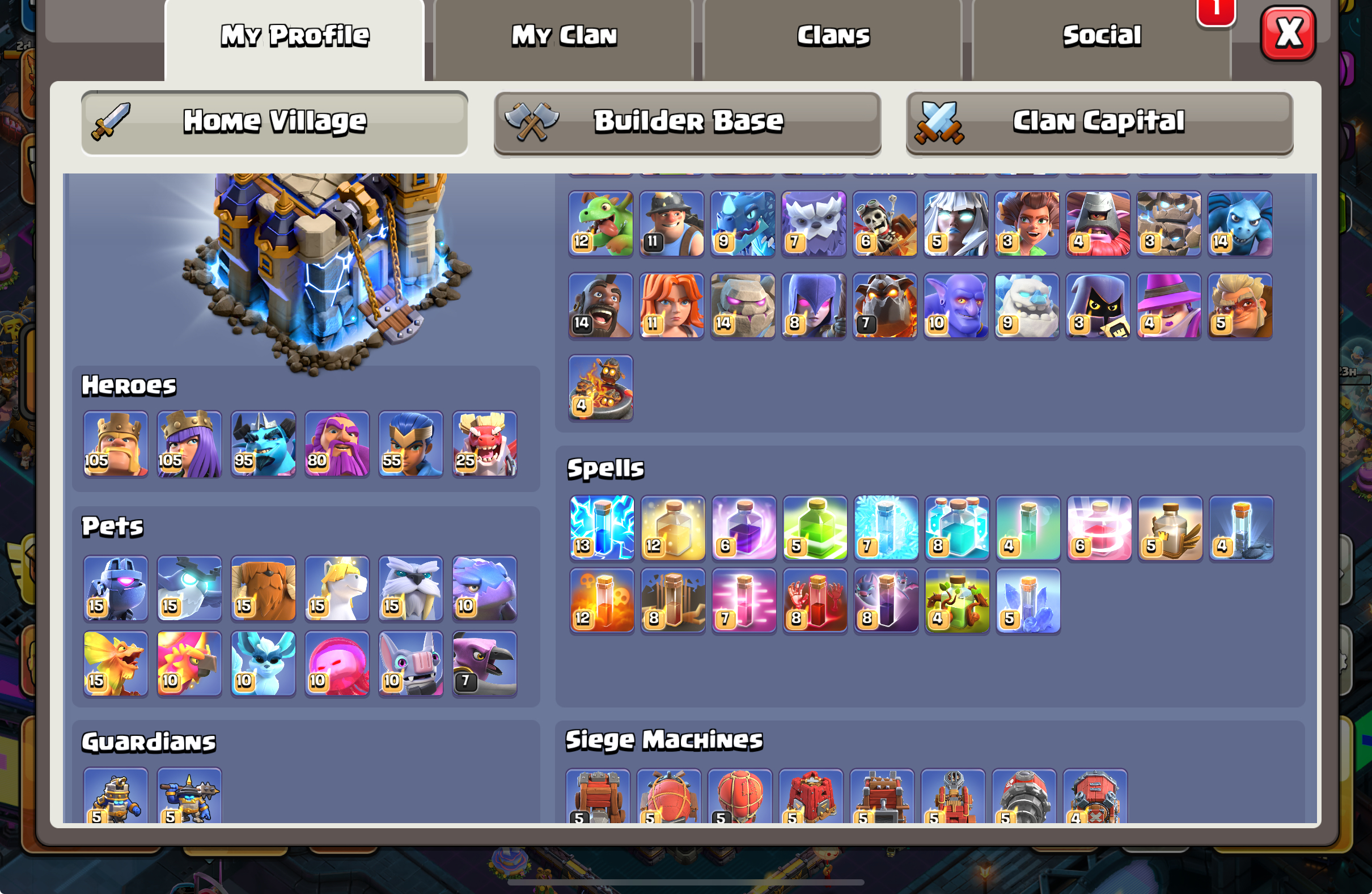 بيت لفل 16 لفل 245+ وفاتح كل شيء والقرية تحت التطوير استخدامي الشخصي ويصير احط أيملك ومع ضمان 💯 لل...