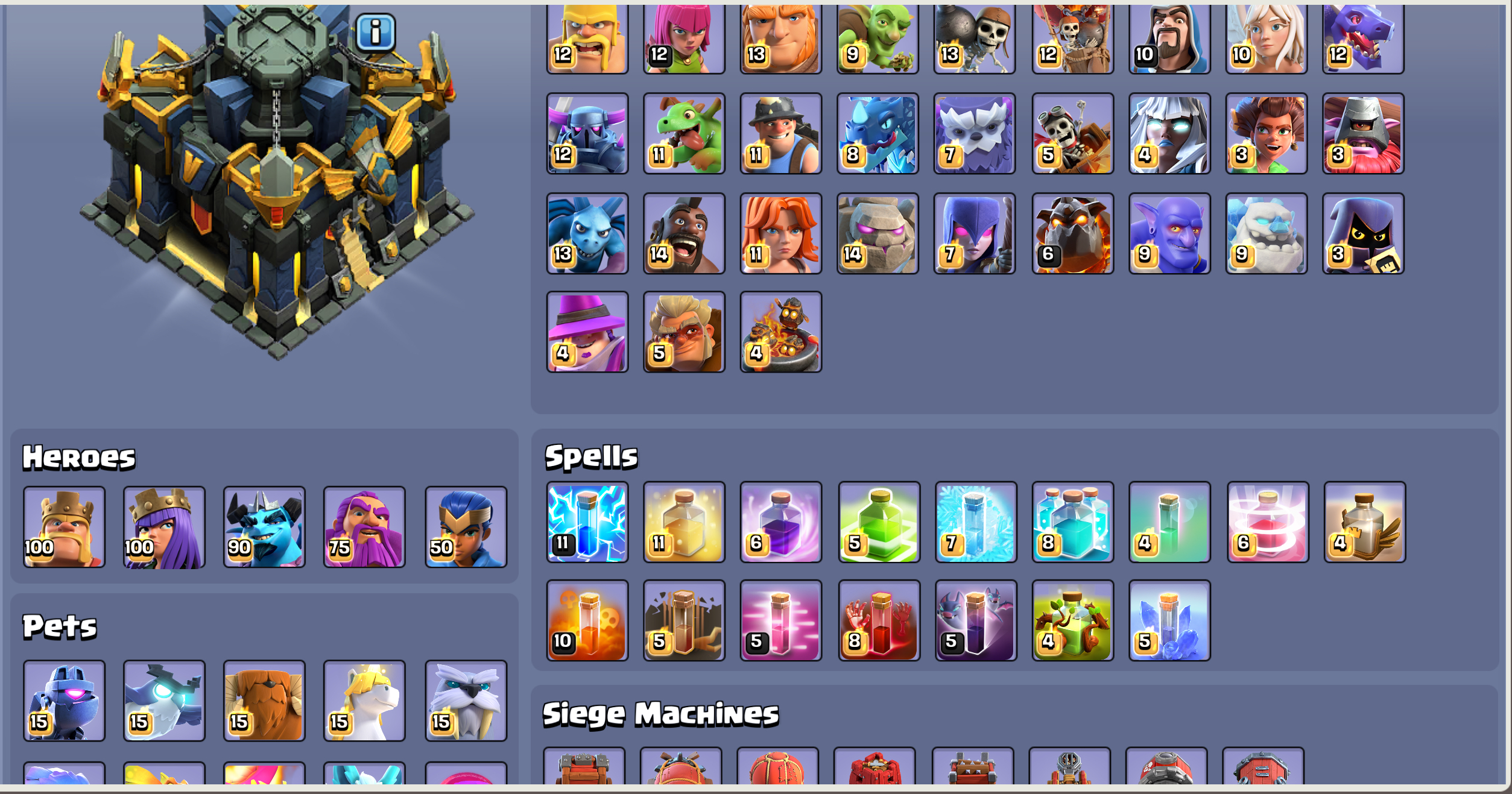 بيت لفل 17 لفل الحساب 200+ تقريبا شبه ماكس التحديث القديم كان ماكس لان بس حاليا تركت اللعبه ماصرت...