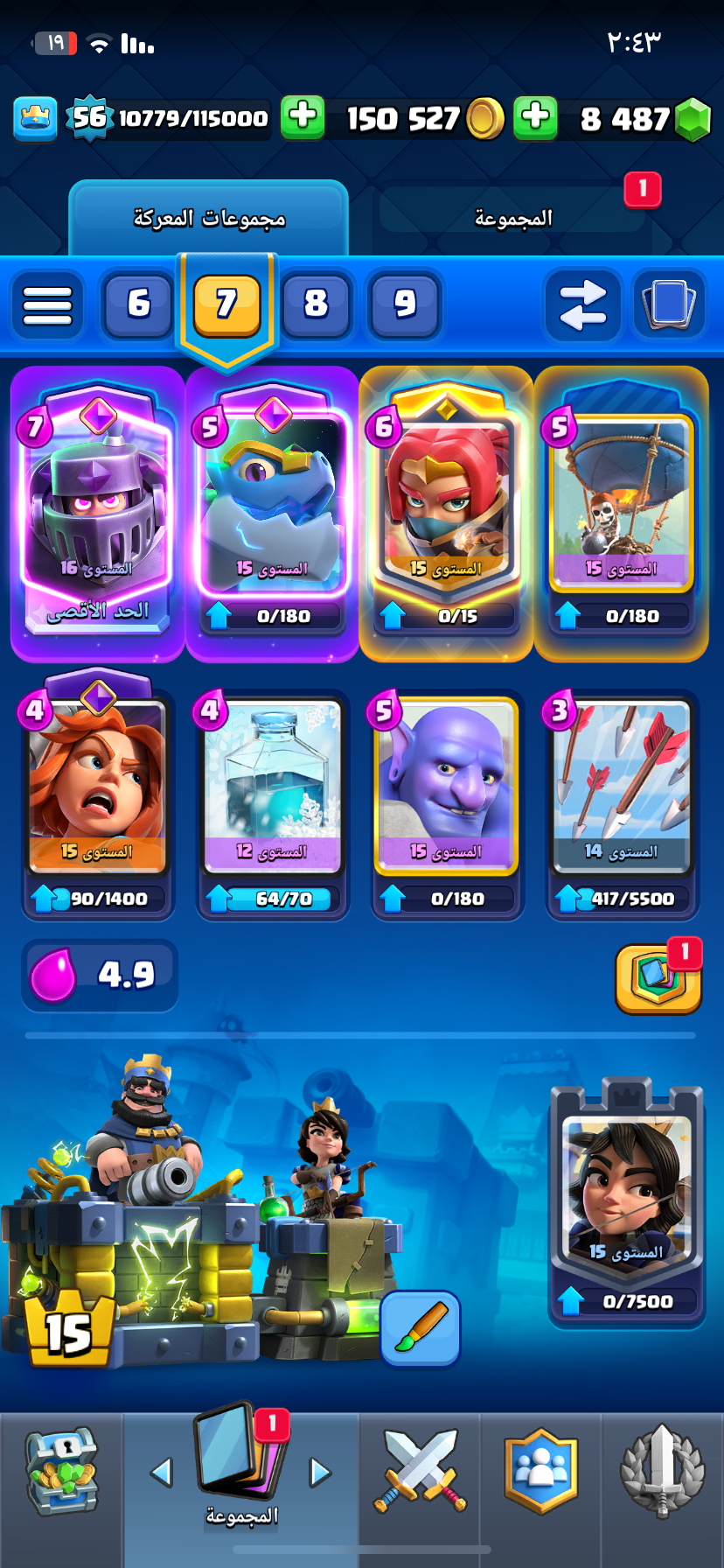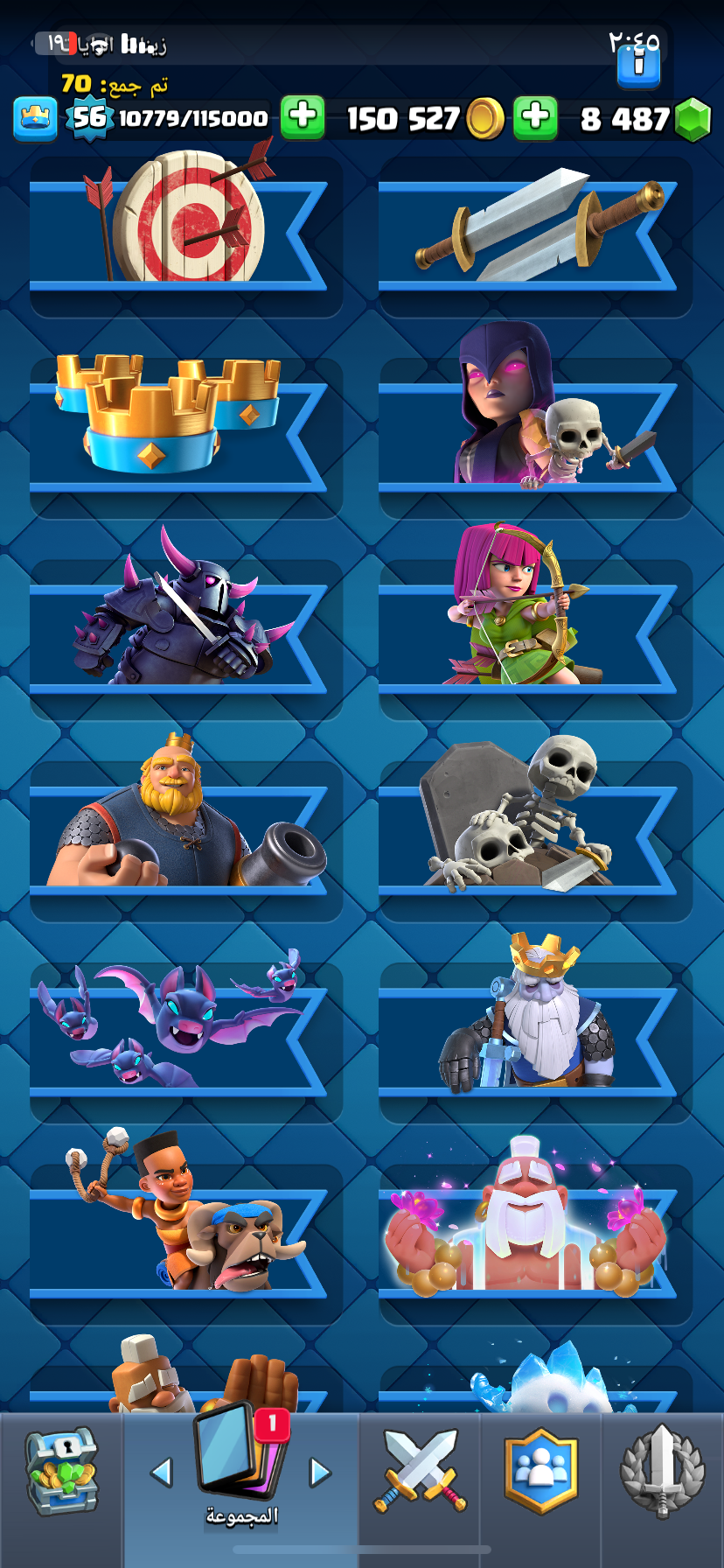 السلام عليكم ، حساب كلاش رويال من 2022 فيه 10 الاف كأس و 8 الاف مجوهرة ولفل برج الملك 15 وباقي معلومات الحساب موجوده تحت فالصور