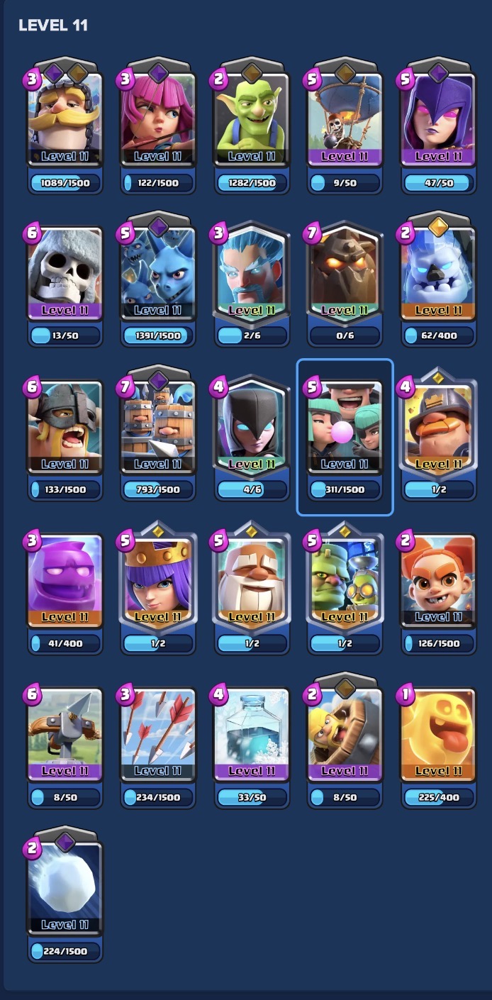 حساب كلاش رويال الكؤسس 8300 البطاقات لفل 11 12 13 طمأن مدى الحياه
