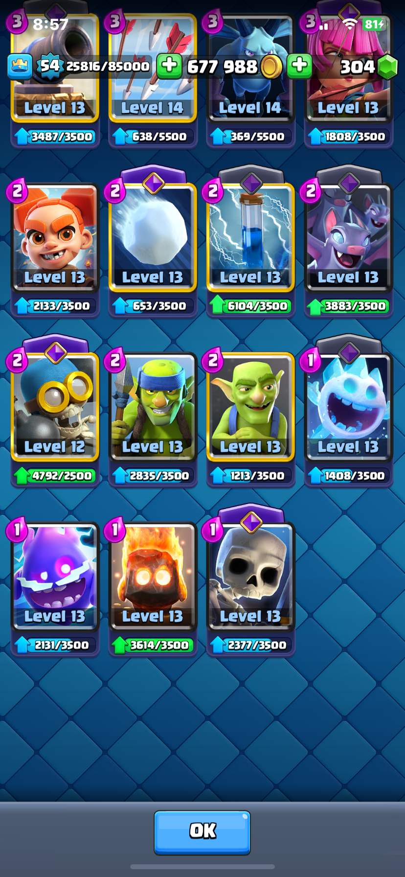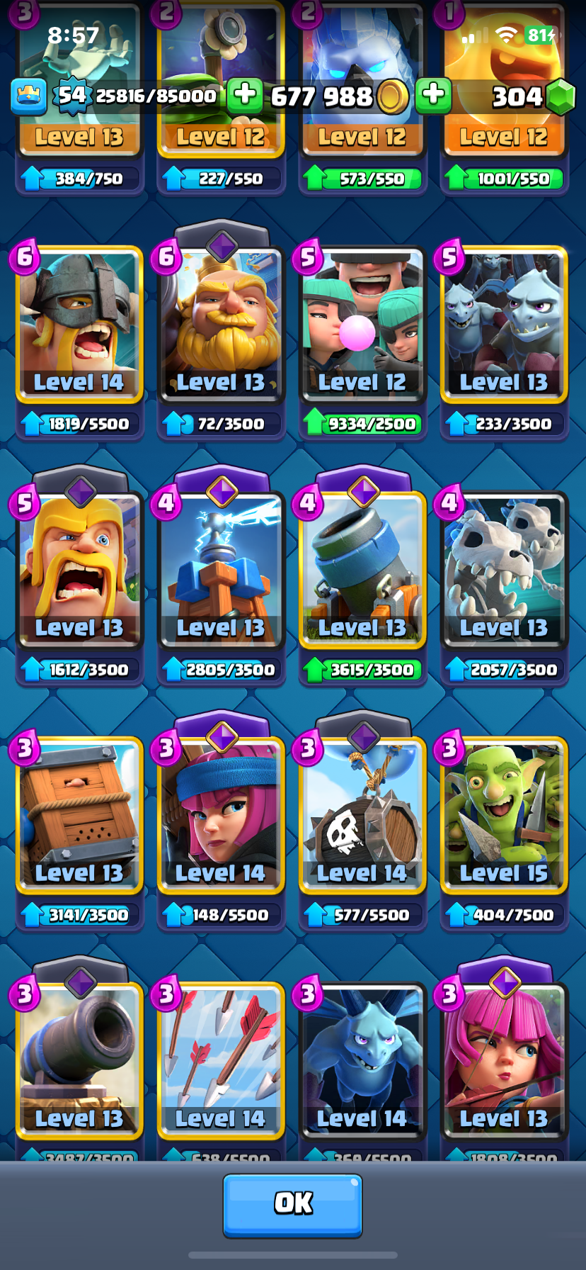 حساب كلاش رويال وكلاش اوف كلانس بسعر رخيص جدا إذا شريت حساب كلاس رويال بيجيك حساب كلاش اوف كلانس تاون ١٠ ملكش تقريبا حساب كلاش رويال اغلبه ماكس ساحه 25 لفل 54 10000 كأس الحساب من 4 سنوات معه إيميله وكلشي إذا استلمت الحساب غير معلوماته عشان يصير لك