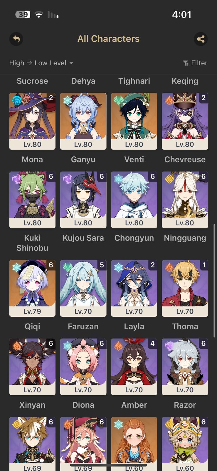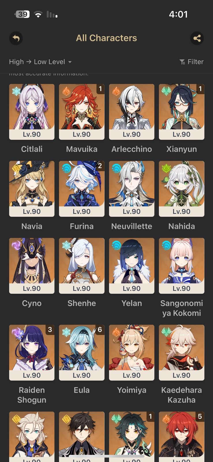 شخصيات 5 نجوم:16 شخصية من دون احتساب المسافر و الوي: Hutao Zhongli Kazuha Albedo Xiao Ayak...