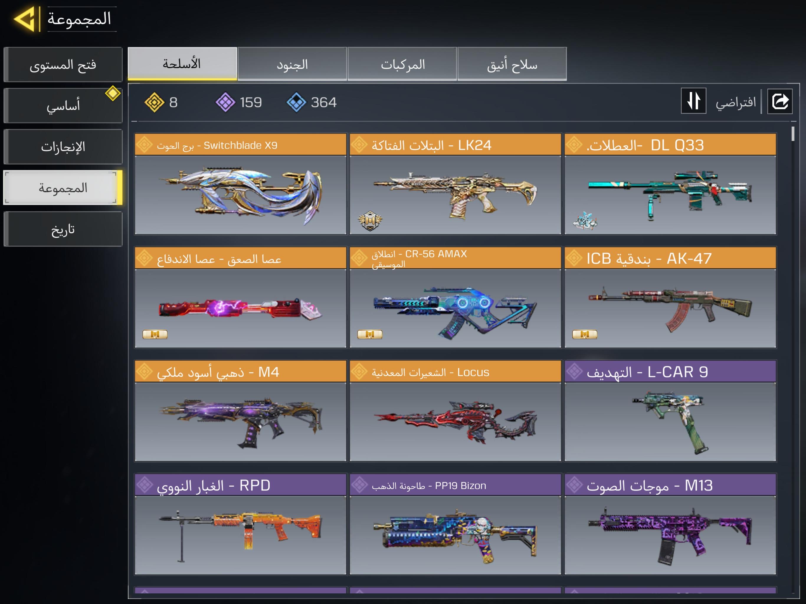 الحساب من السيزون الاول مشحون سيزونين اللفل 158 مربوط فيس بوك واكتفيجن ومضمون مدى الحياه الاسلحة...