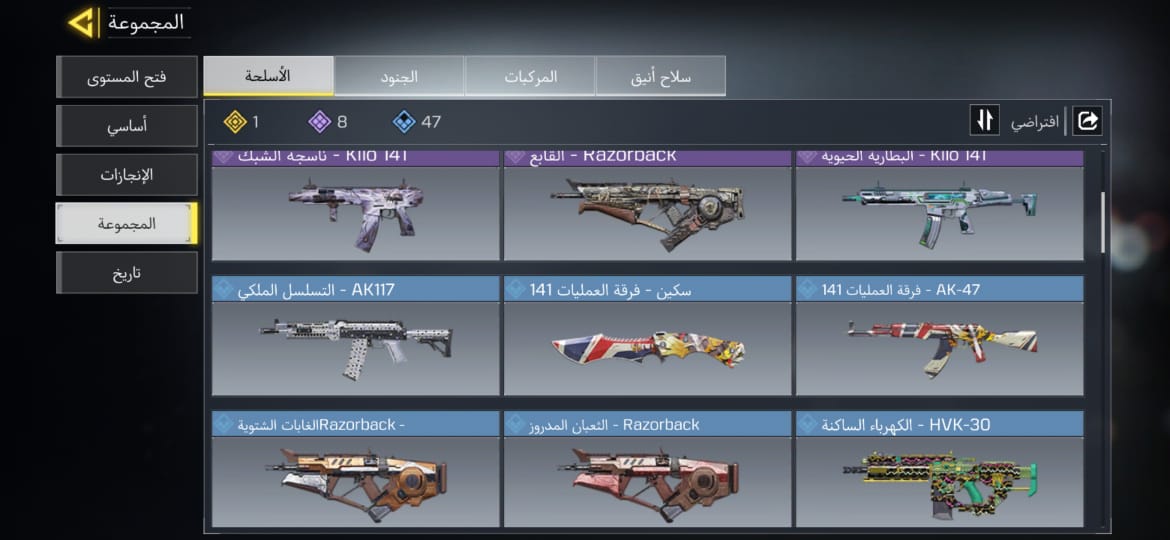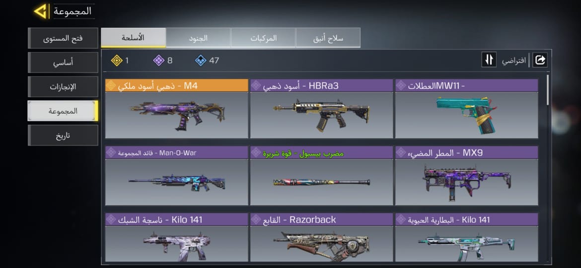 لفل: 398 الرانك: محترف المحتويات: اكثر من 10 اسلحه مذهبه والسكاكين اغلبها الماس M4 ذهبي ا...