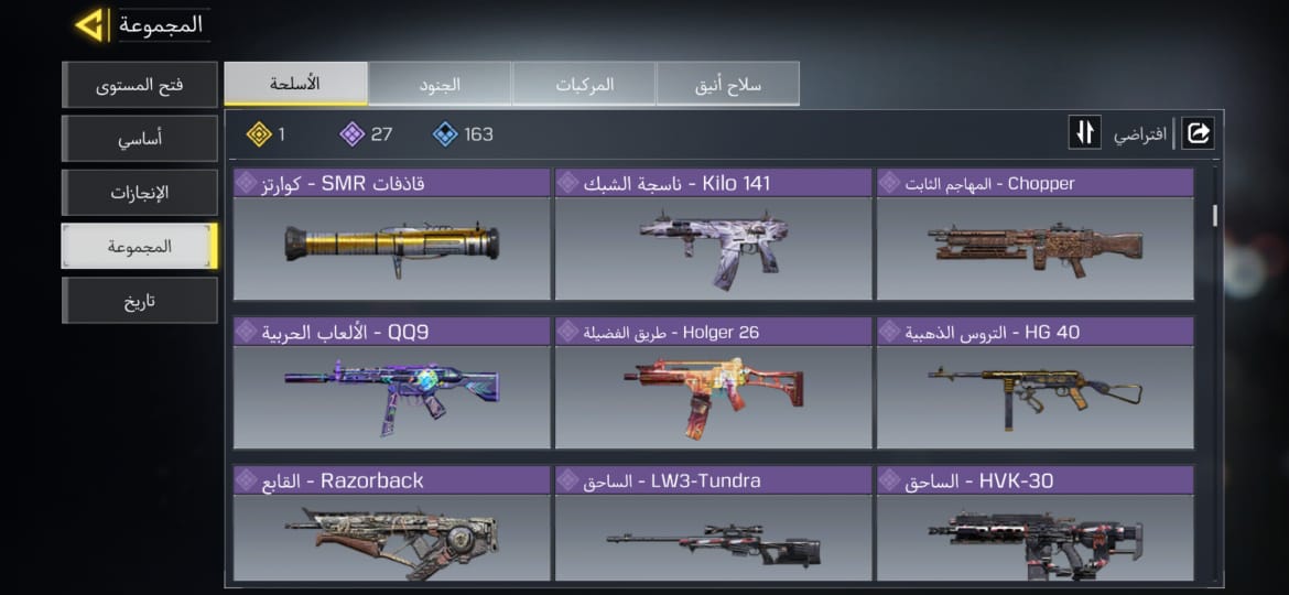 الحساب من السيزون الاول مشحون سيزونين اللفل 158 مربوط فيس بوك واكتفيجن ومضمون مدى الحياه الاسلحة...