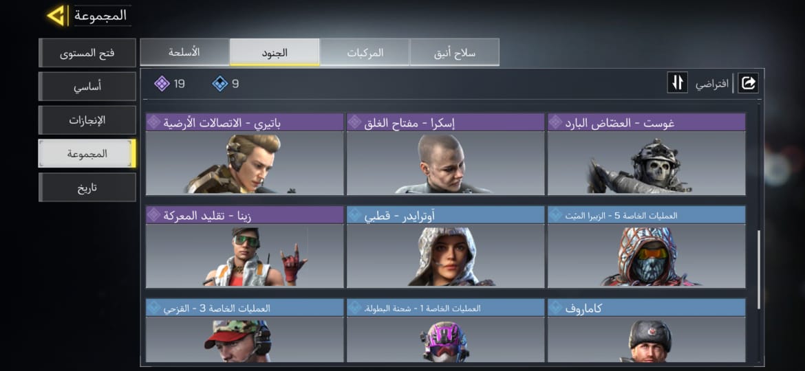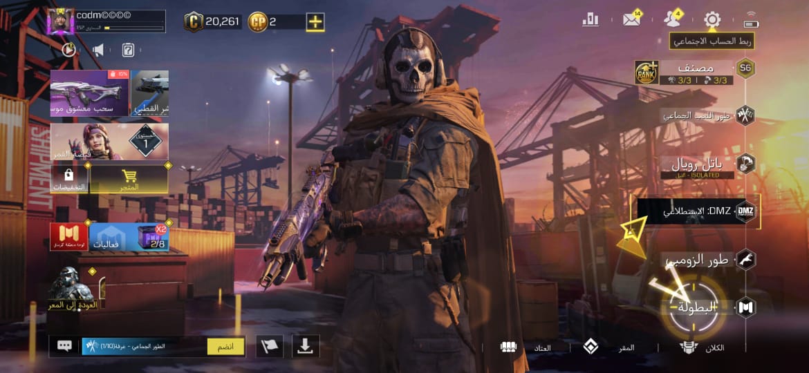 🎖️ حساب كود موبايل "نادر" (ريجن رخيص)🎖️ حساب آمن ومميز، يجمع بين الأسلحة الأسطورية وسهولة توفير الشحن: 🔥 أهم المحتويات: 🔫 سلاح M4 ليجندري (ذهبي أسود ملكي). 👤 3 سكنات لقوست وبرايس. 👤 سكنات إضافية مميزة (فرح، سيراف، ريغز) والعديد من الأسلحة البنفسجية. 🕺 يحتوي على مجموعة من الرقصات المميزة. 💰 ميزة الحساب (الأرخص): 🎟️ العجلات: تبدأ من 10 CP. 🎫 الباتل باس: بـ 220 CP فقط. 🔐 الأمان والربط: 🔗 الربط: أكتفيجن فقط (Activision). 📧 التسليم: يتم تسليم الحساب مع الإيميل الأساسي.