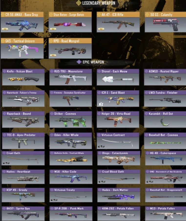 شخصية خرافية 1 : سايرن 🔥 سلاح أسطوري 7 : لوكاس ألكترون 🔥 M4 مهرج 🔥 M4 اسود ملكي 🔥 عصاء الصعق 🔥 BK57...