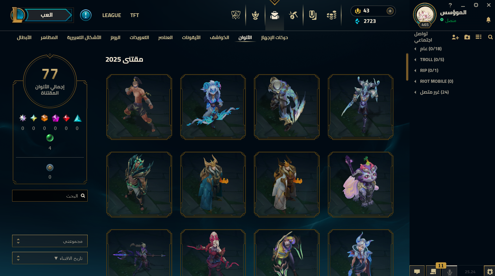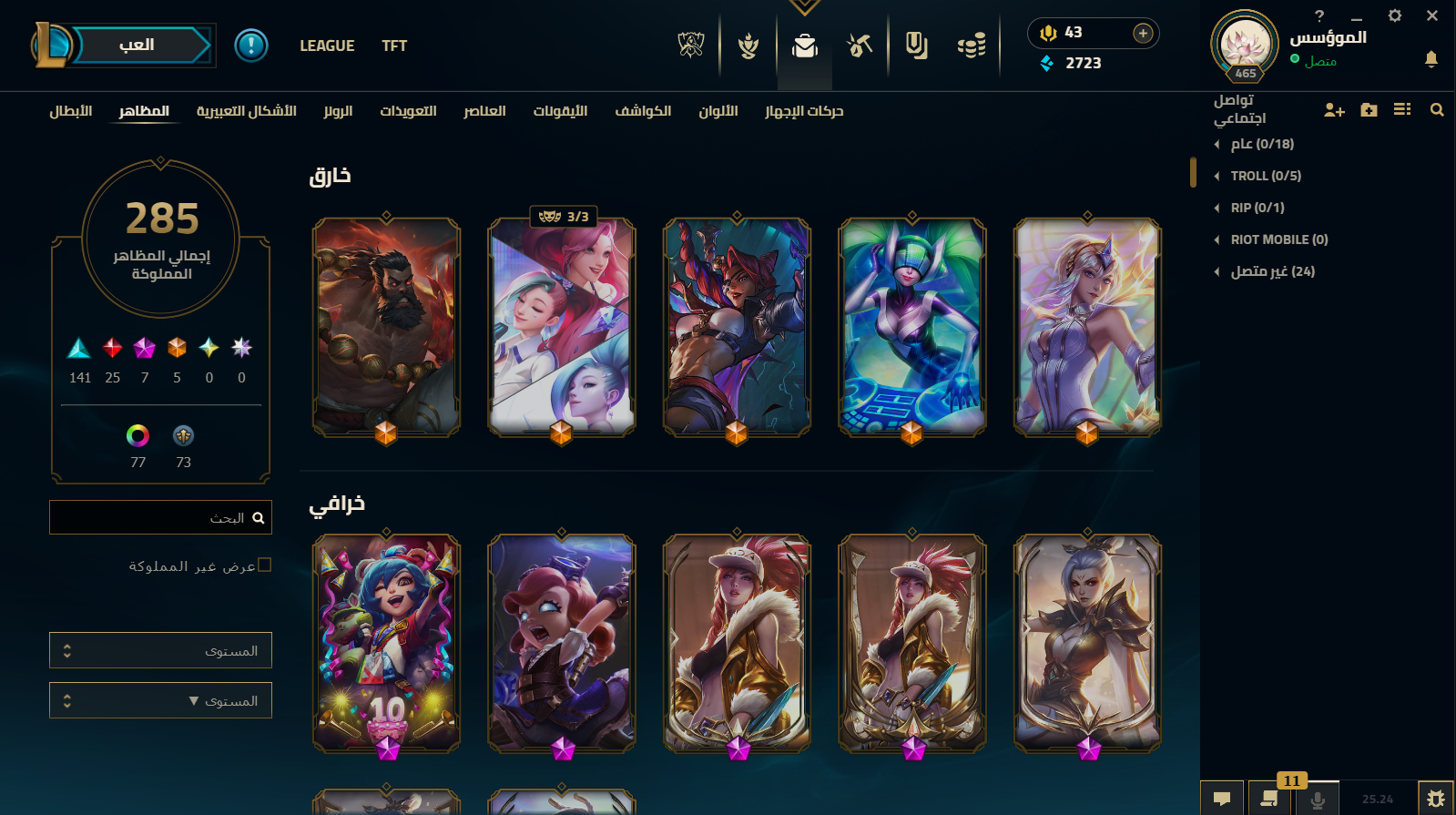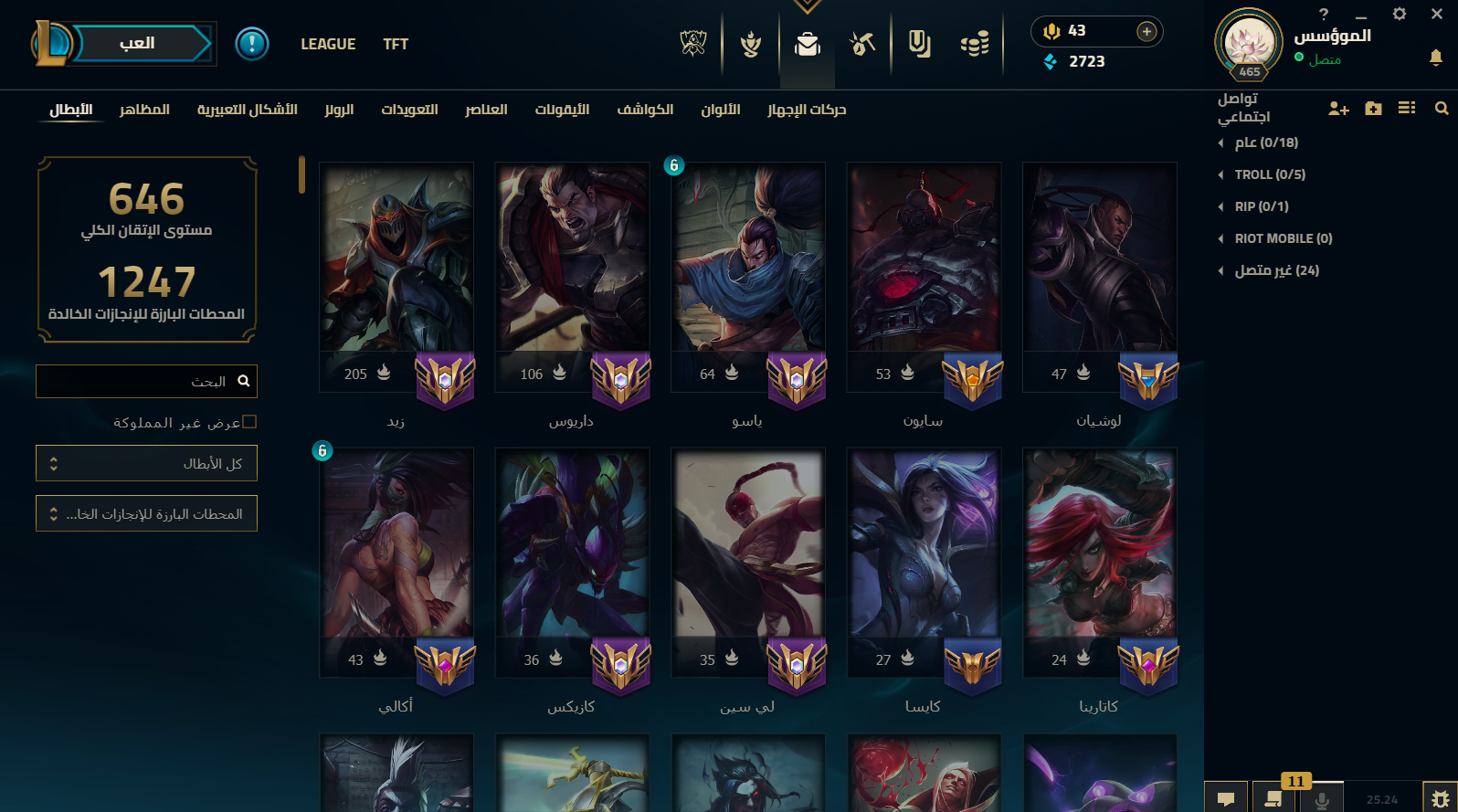 الحساب فيه : - total mastery score : 333 - milestones passed : 280 - total skins : 62 ( 1 ultimat...