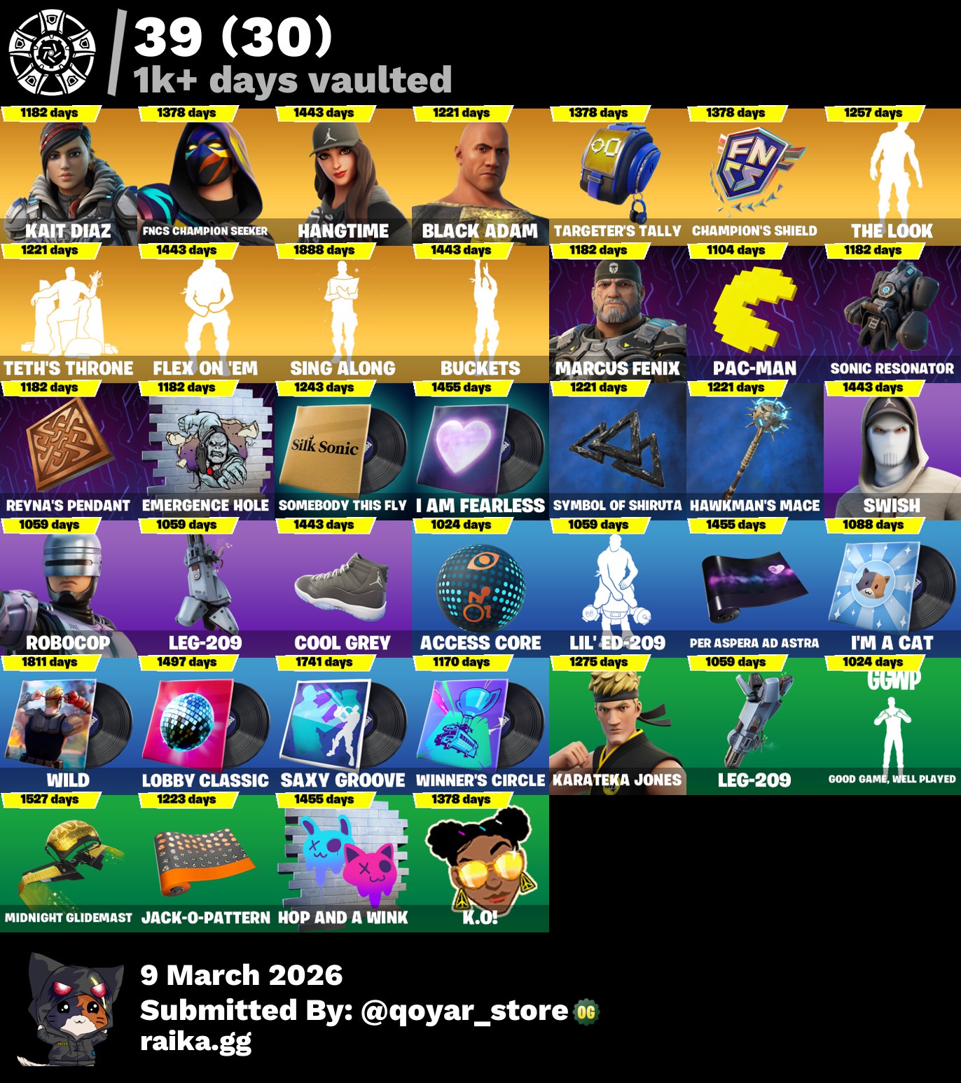 حساب فورت نايت فيه 1000 فيبوكس و79 سكن، وحساب ايبيك قيمز فيه قراند فايف