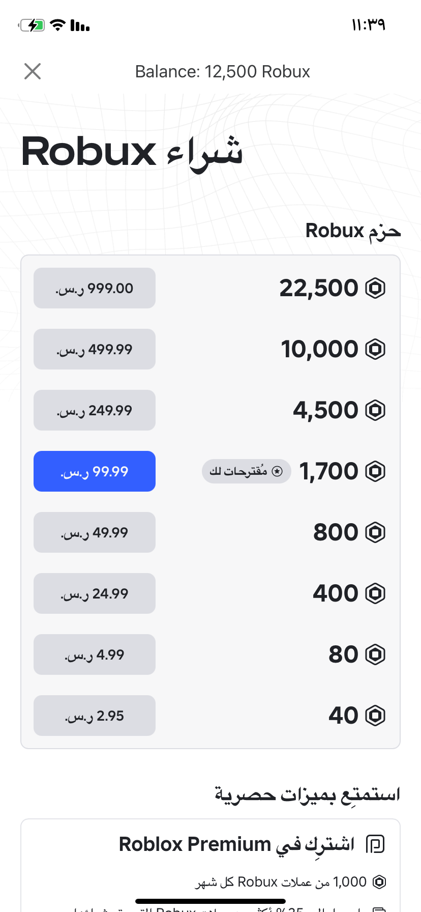 اعرض لكم منتج جديد على السوق وهو عباره عن حساب روبلوكس فيه روبوكس عدد الروبوكس 12500 الحساب ماهو مربوط بايميل او رقم معلومات الحساب فقط يوزر وباس تشتريه وتربطه بايميلك او رقمك + لايوجد ضمان على الحساب الضمان فقط دخولك للحساب ويكون مشحون 12500 روبوكس اقدر اضمن لك الحساب 25 دقيقه الى حين تتبرع لحسابك الشخصي ويُفضل التبرع لحساب ثاني يكون حسابك