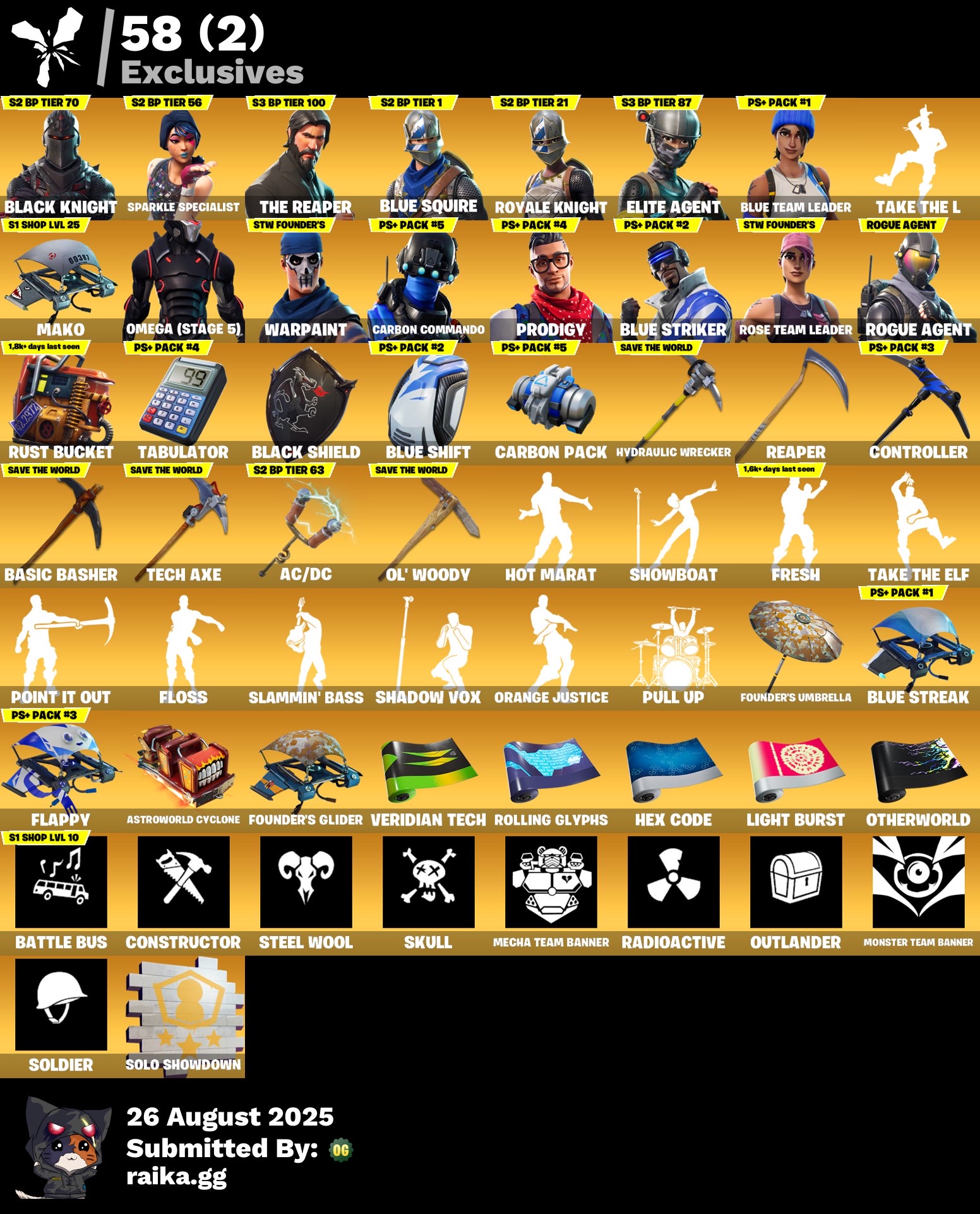 • حساب فورت نايت اساسي • يربط جميع المنصات • سيزن 2 ماكس • سيزن 3 ماكس • سكنات البلس القديمة • مظلة ماكو • بنر الباص • طور الزومبي القديم • باقة Super Deluxe Edition طور الزومبي • 90 سكن • 76 بكاكس • 108 رقصة • الحساب خامل 208+ يوم • 500 فيبوكس • اغراض و سكنات و رقصات ما نزلت في الشوب فوق 1000+ و 2000+ يوم • الحساب ايميلة اوتلوك(outlook) • ايميل الايبك يتغير ✅✅ • الحساب مضمون✅ • تقدر تغير الايميل بنفسك بدون تنتظر 90 يوم • للعلم ايميل الايبك يعتبر Origin email ✅