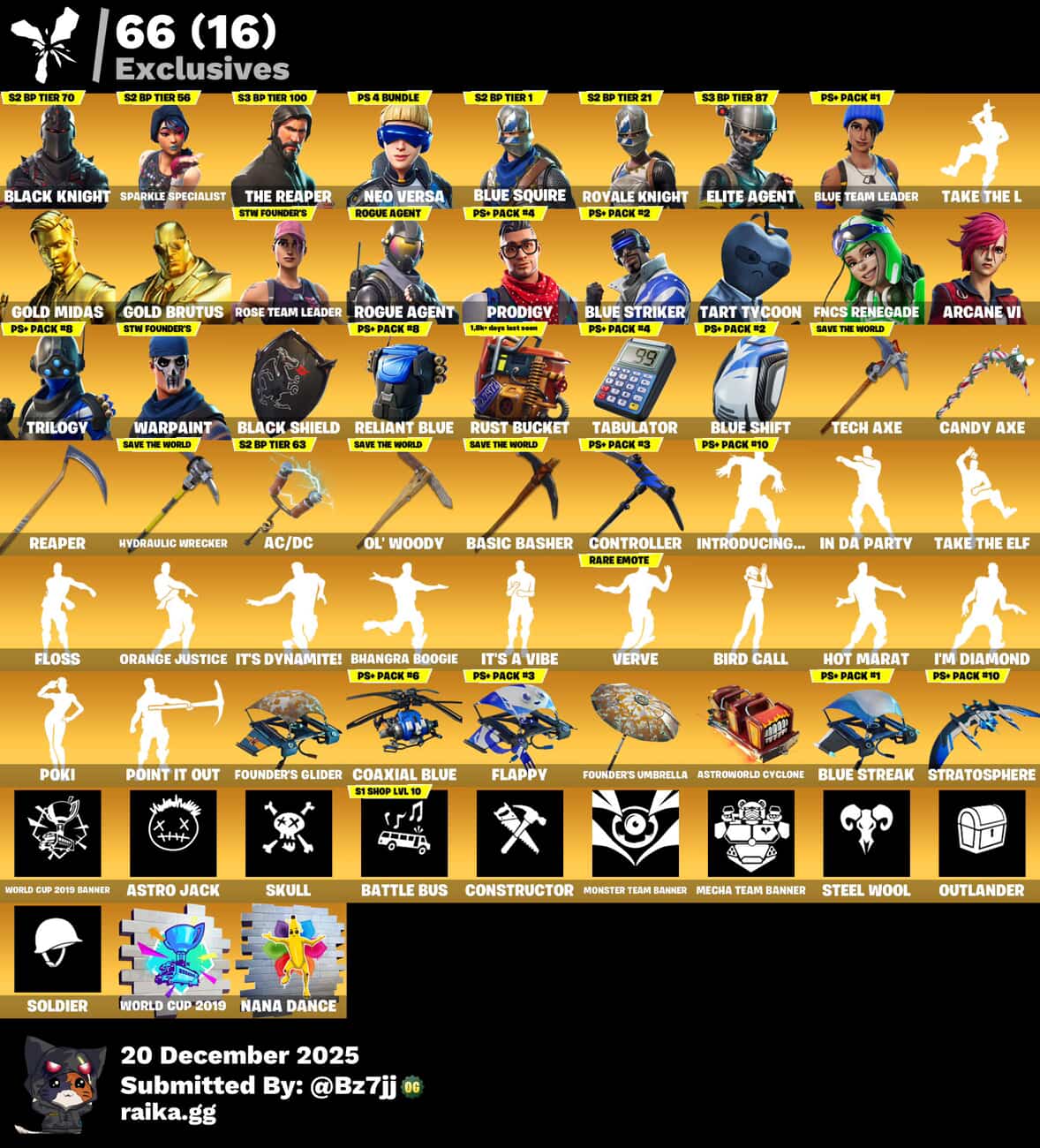 حساب فورت نايت • يربط جميع المنصات • الشابتر الاول ماكس• سكنات البلس القديمة • طور الزومبي القديم • بنر الباص •267 سكن •247 بيكاكس • 328 رقصة • 400 فيبوكس اغراض و سكنات و رقصات ما نزلت في الشوب فوق 1000+ و 2000+ يوم • كامل معلوماته • فل اكسس