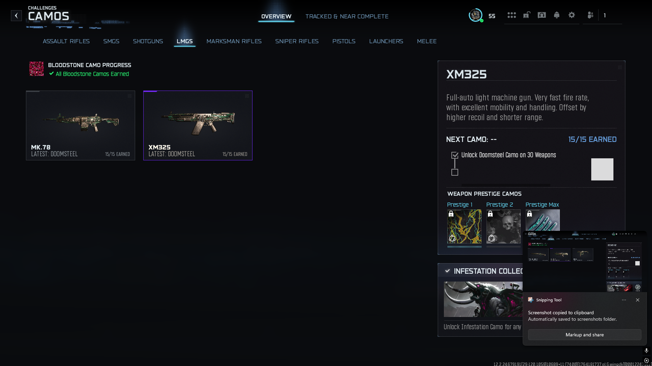 الحساب جميع اسلحت مودرن ٣ ملفله ماكس فيه لفل الحساب ٢٠٠ او اعلى بعض الاسلحه عليها طلقات ملونه وبعض...