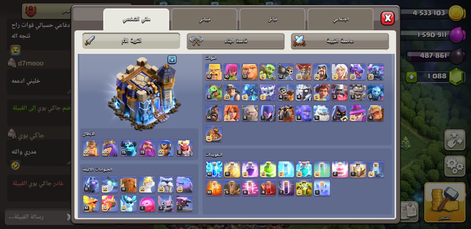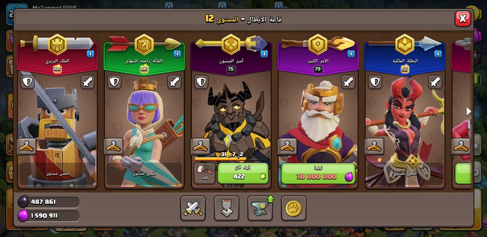 قرية كلاش أوف كلانز تاون 16 الملك 85 ملكه 90 الأمر 66 البطله 45 لتفاصيل اكثر شوف الصور بالوصف