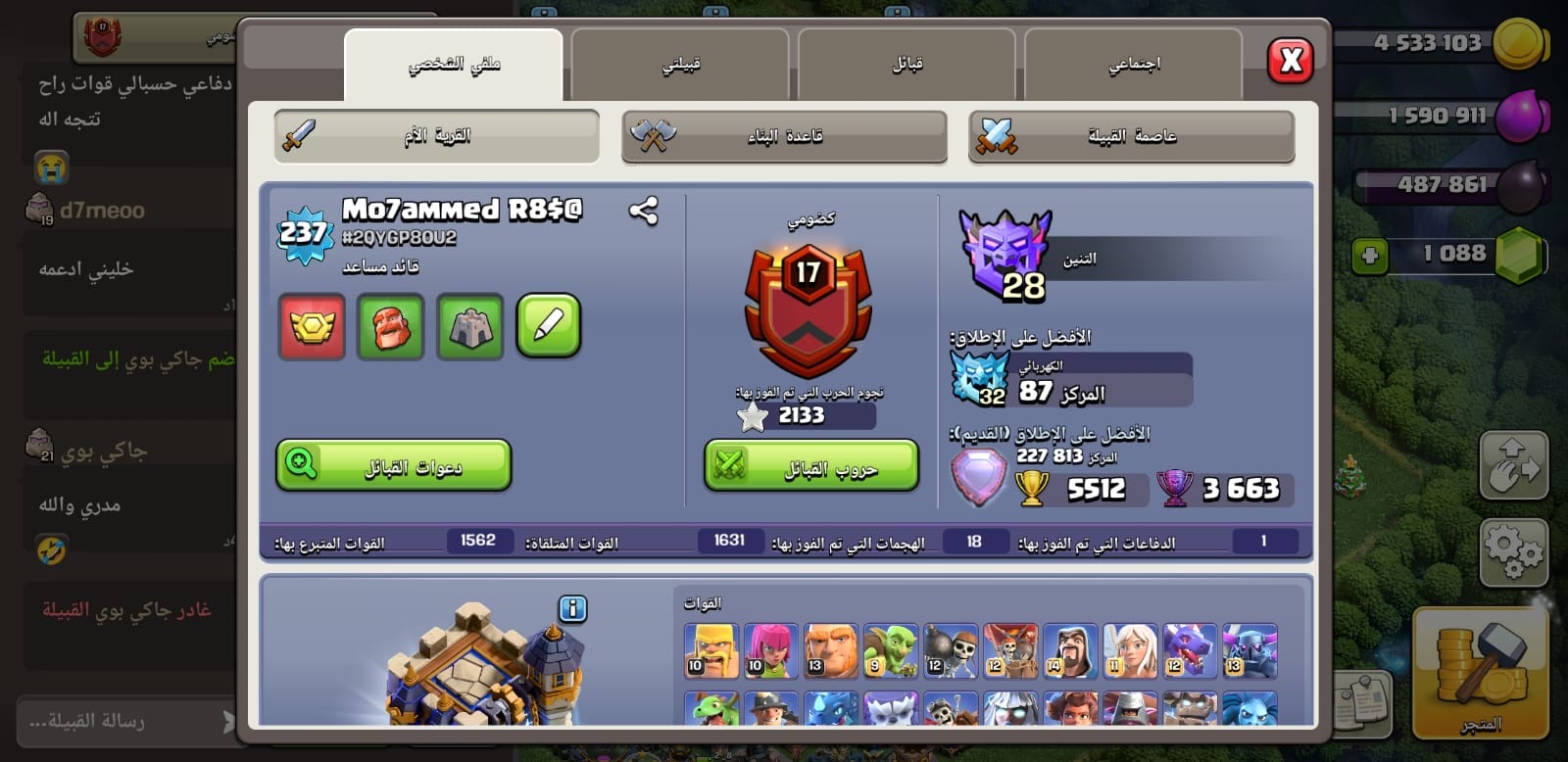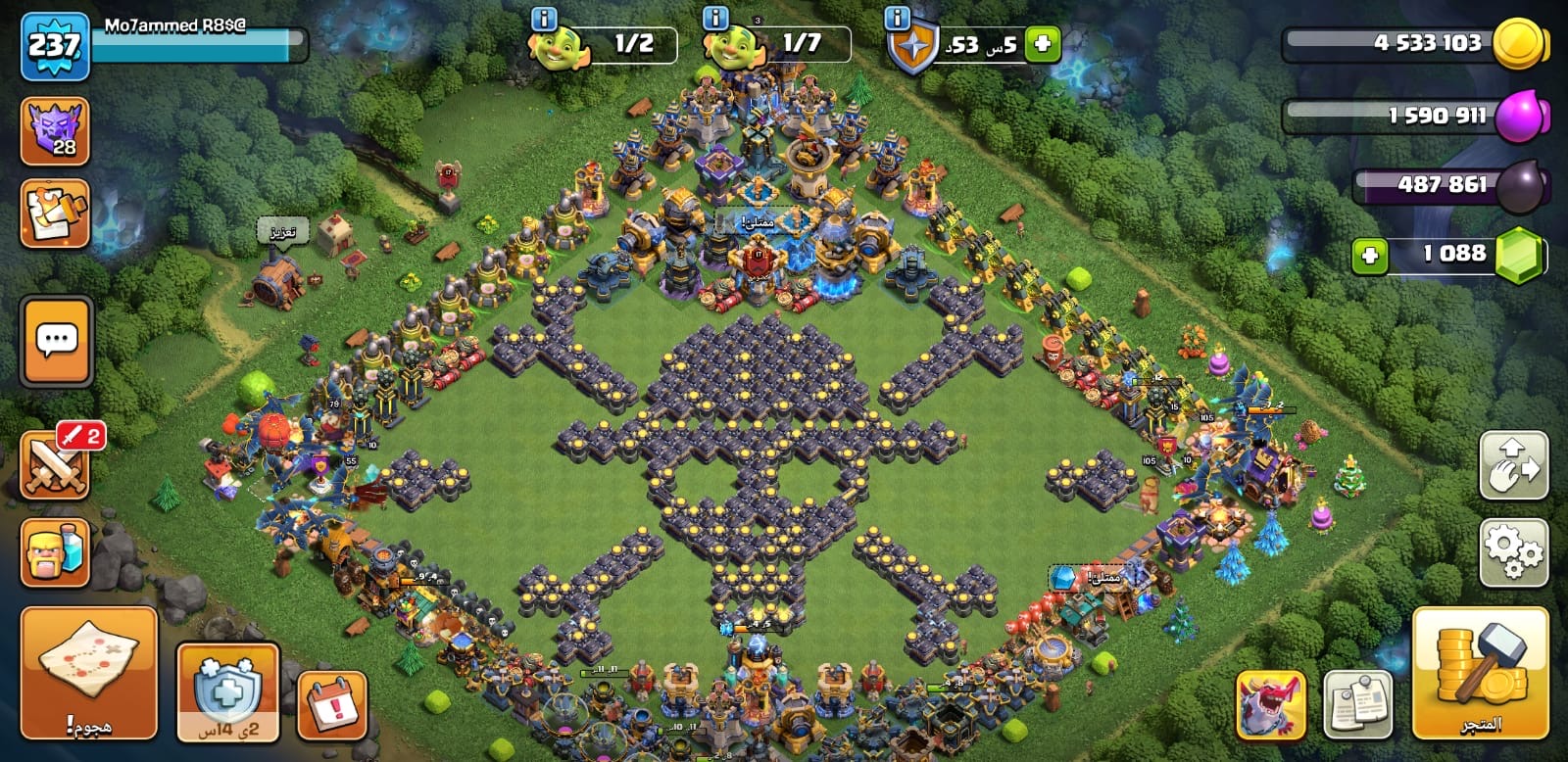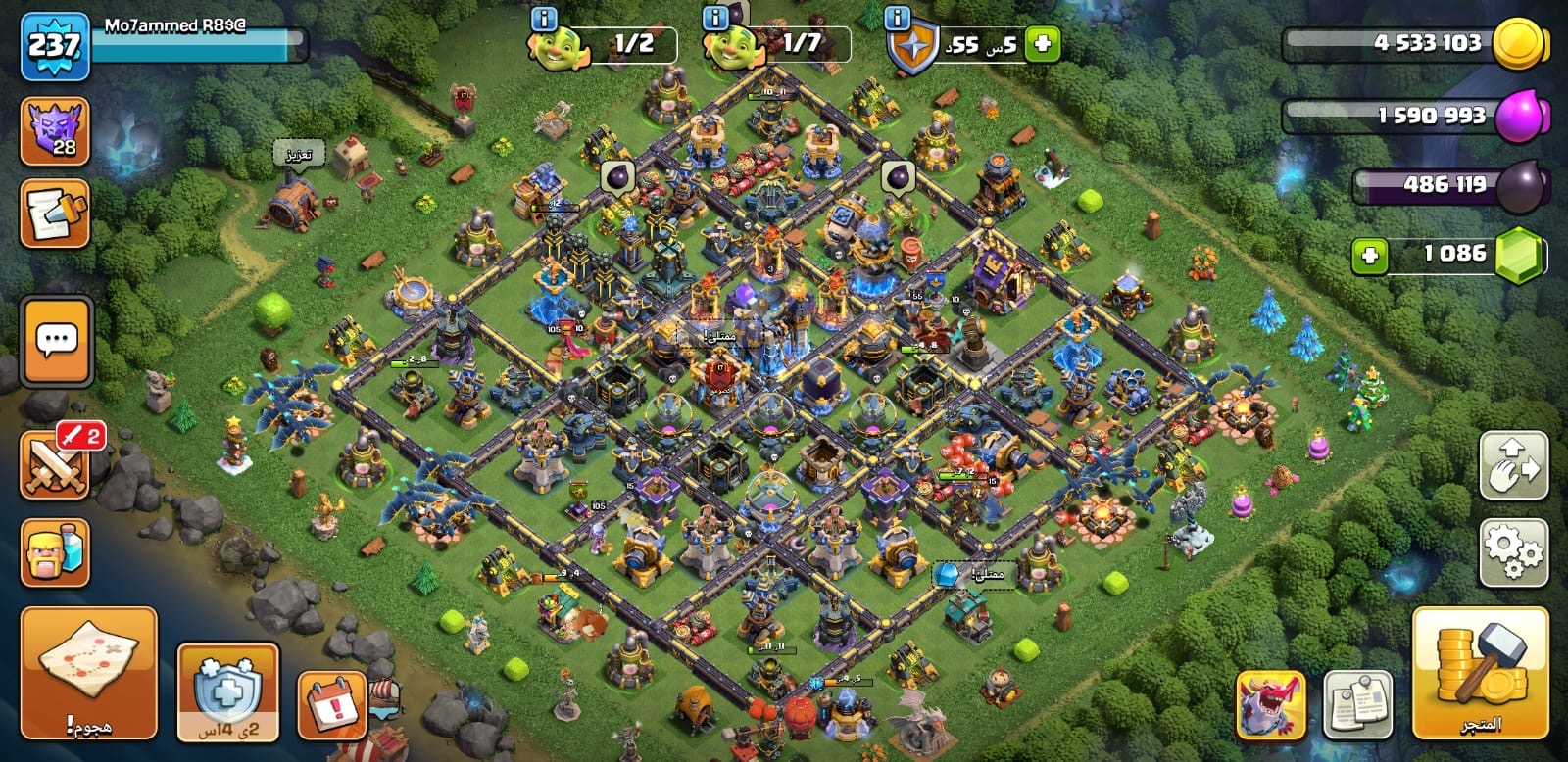 حساب كلاش أف كلانس كامل متكامل ماكس ١٧ إلا بعض الأفخاخ وسكنات فيه ومعدات الملوك في منها كثير ماكس وق...