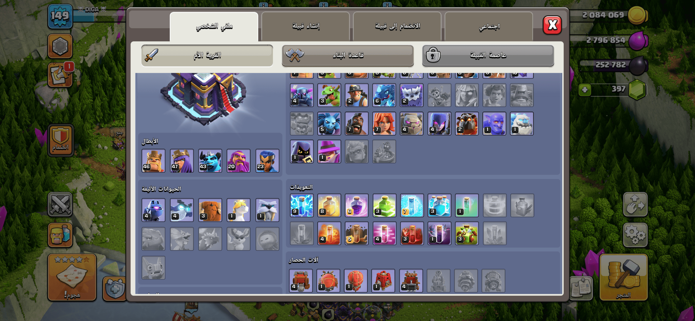 الحساب توه متطور للتاون ١٢ كان ماكس ١١ بكل شي الملوك والمعمل وكل شي الحساب استعمالي الشخصي