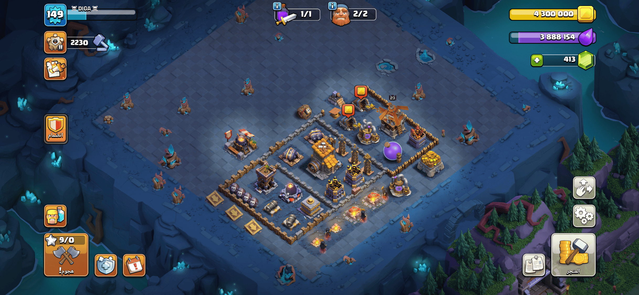 القريه مرتبه لفلها عالي وقريبه جدا على الماكس باقي السور بس + فيها 2200 جوهرة + سكنات للملوك +حتى ال...