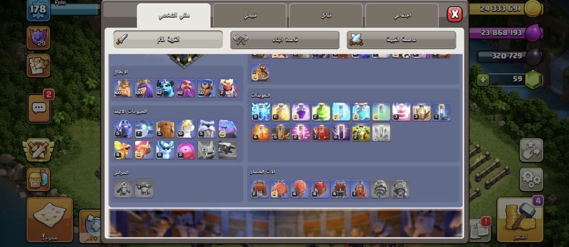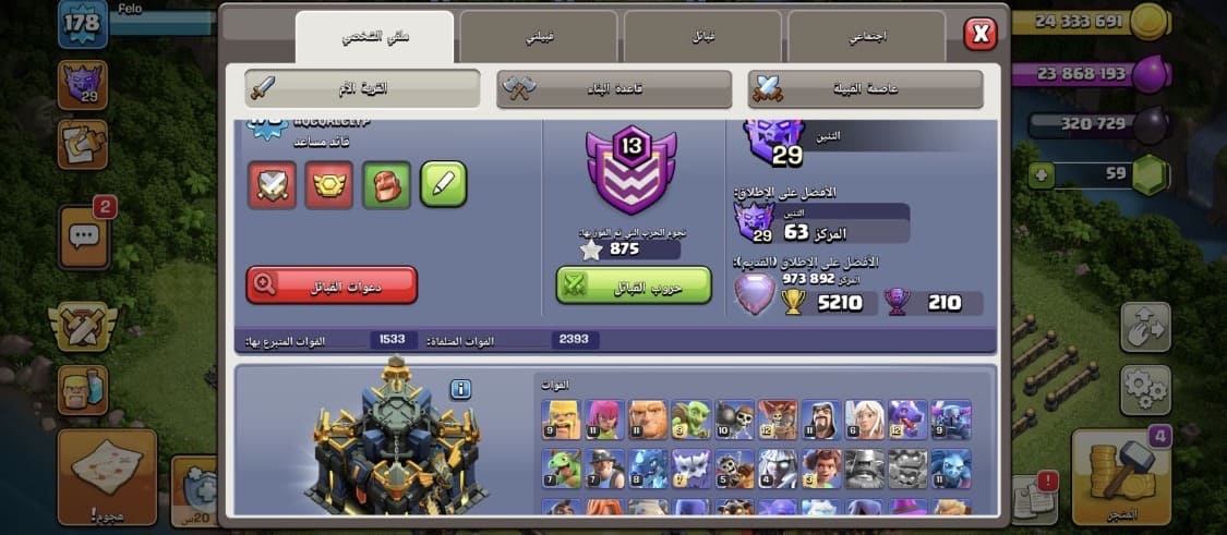 الحساب مرتب حيل كل شي فيه ماكسس الجنود اغلبهم ماكس و الدفاعات كلهم ماكس و القريات الثانيه الثنتي...