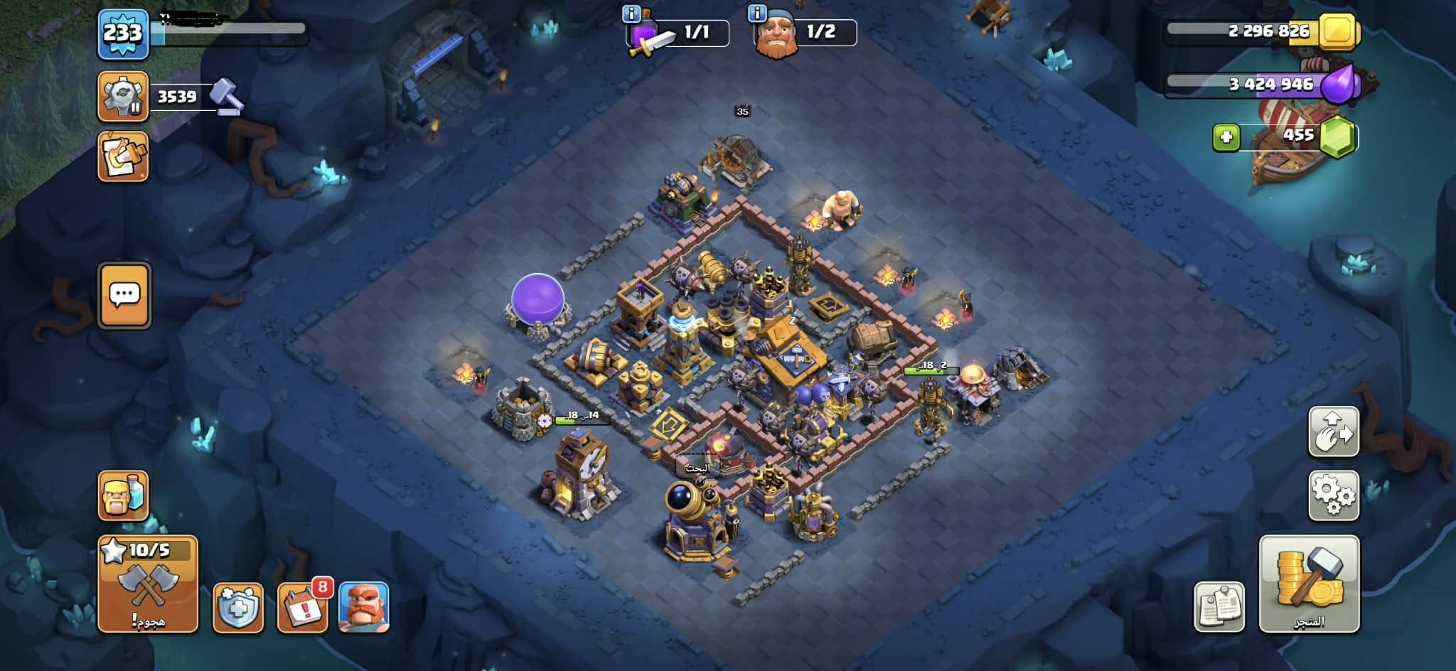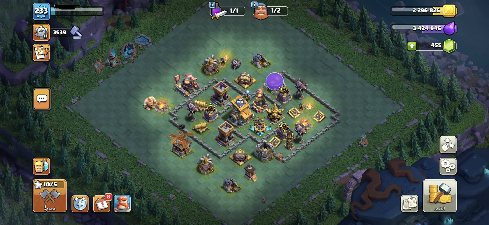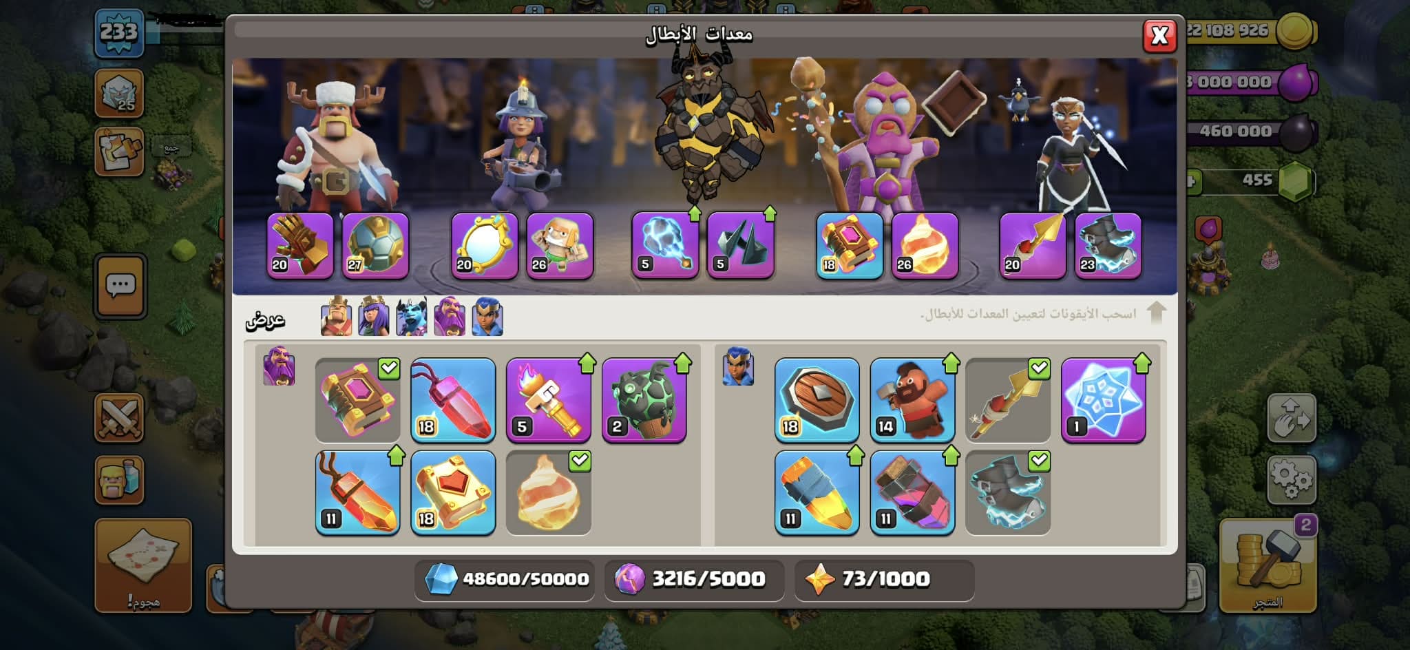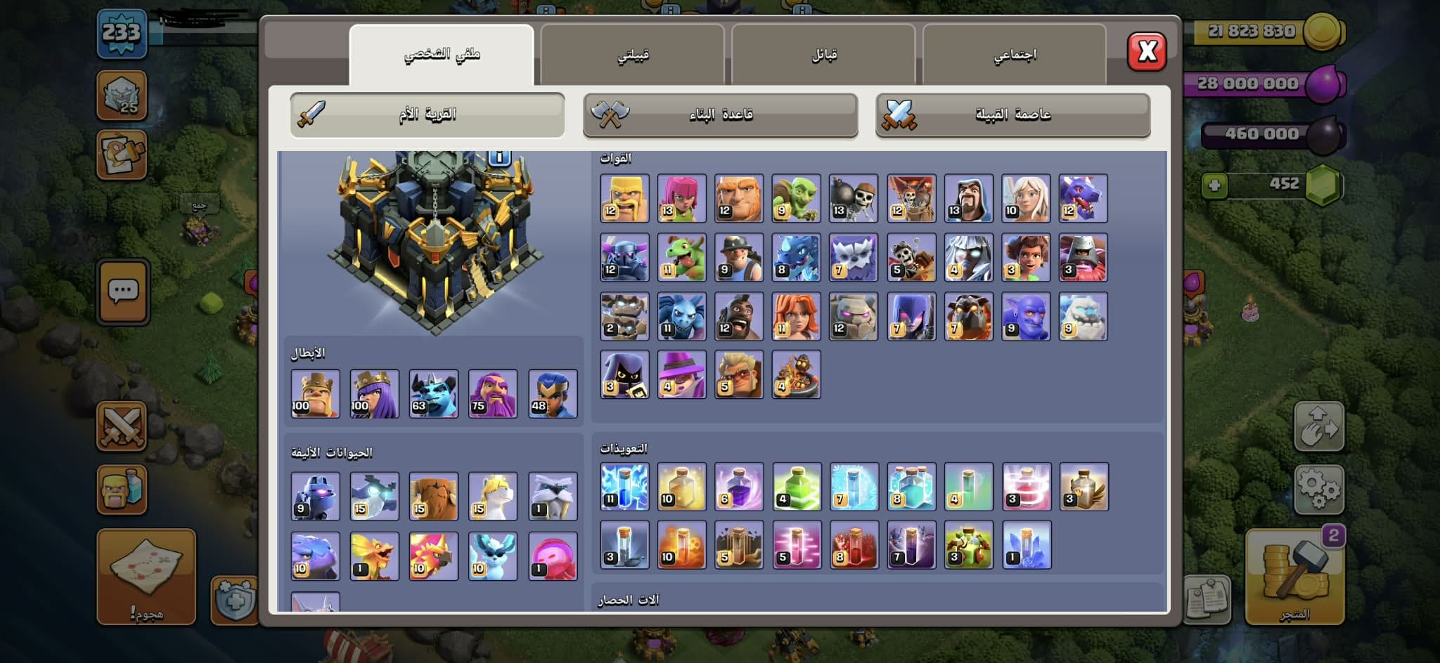 حساب كلاش أف كلانس كامل متكامل ماكس ١٧ إلا بعض الأفخاخ وسكنات فيه ومعدات الملوك في منها كثير ماكس وق...