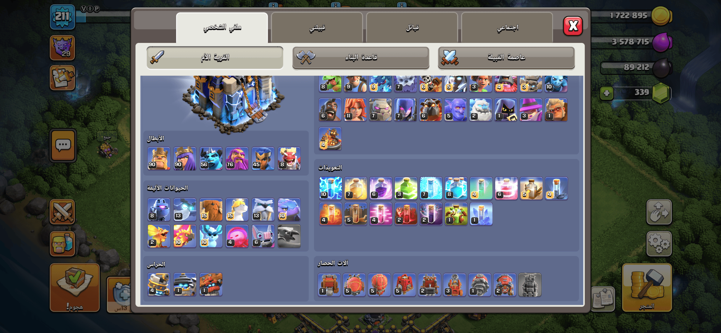 حساب كلاش أف كلانس كامل متكامل ماكس ١٧ إلا بعض الأفخاخ وسكنات فيه ومعدات الملوك في منها كثير ماكس وق...