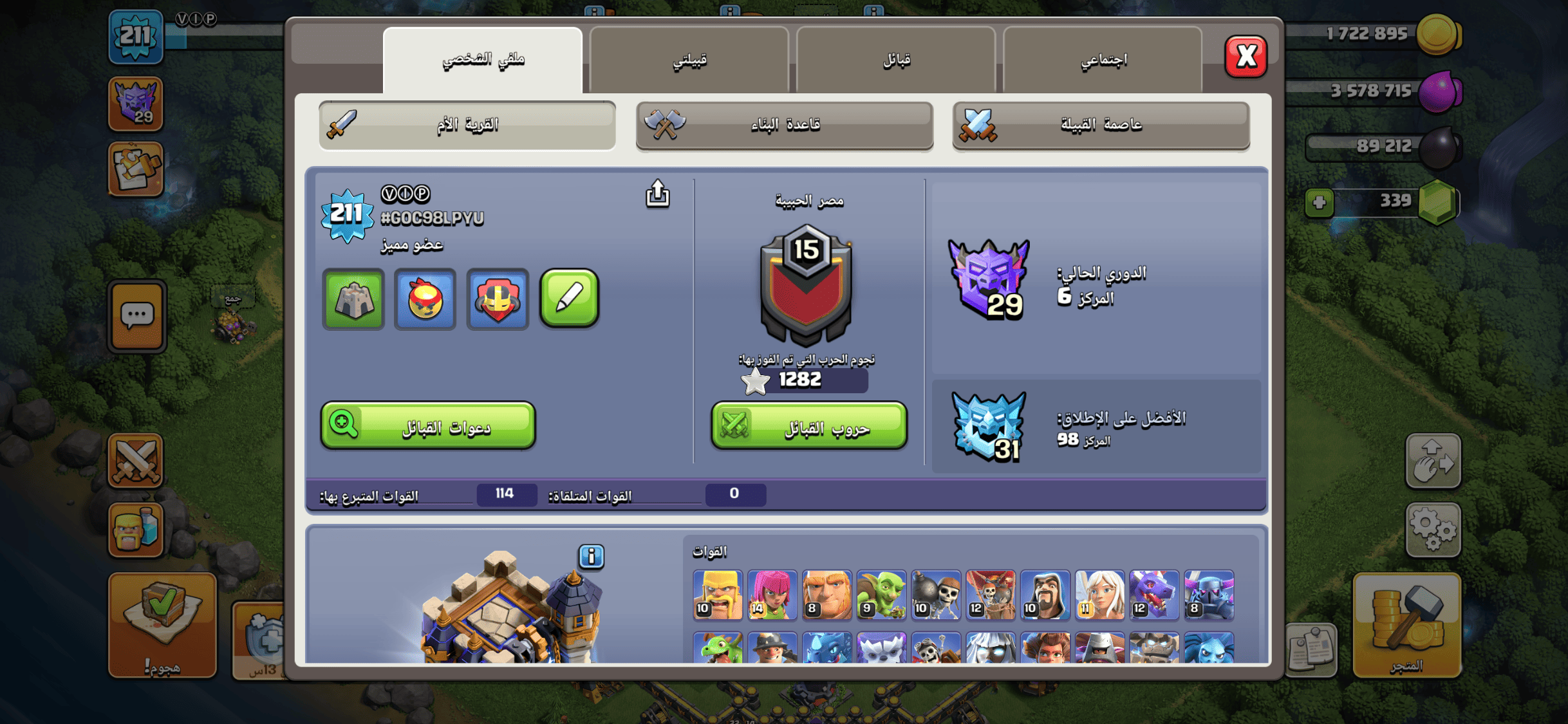 🌐للبيع حساب كلاش اوف كلانس🧑🎨:-* ➖➖➖➖➖➖➖➖➖➖➖➖ #YP0YV09VV *التاون [14] 🏠* *اللف...