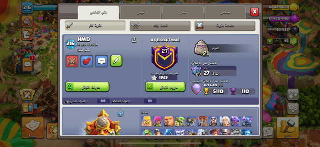 الحساب مرتب حيل كل شي فيه ماكسس الجنود اغلبهم ماكس و الدفاعات كلهم ماكس و القريات الثانيه الثنتين كلهم ماكس + سكنات وفيه التذكره الذهبيه حق هالسيزون كامل لفل القرية 216 الملك رايح لفل 90 الملكة رايحه لفل 90 الامر الكبير ماكس لفل 70 البطله ماكس لفل 45 المينيون ماكس لفل 80 الدوق الجديد رايح لفل ٤ العمال كاملين كل شي بالقريه مرتب وتصاميم جاهزه كود القريه الي يبي يشوفها اوضح #LJ9JVL98R مربوط ايميل جيميل والقريه حيل مرتبه
