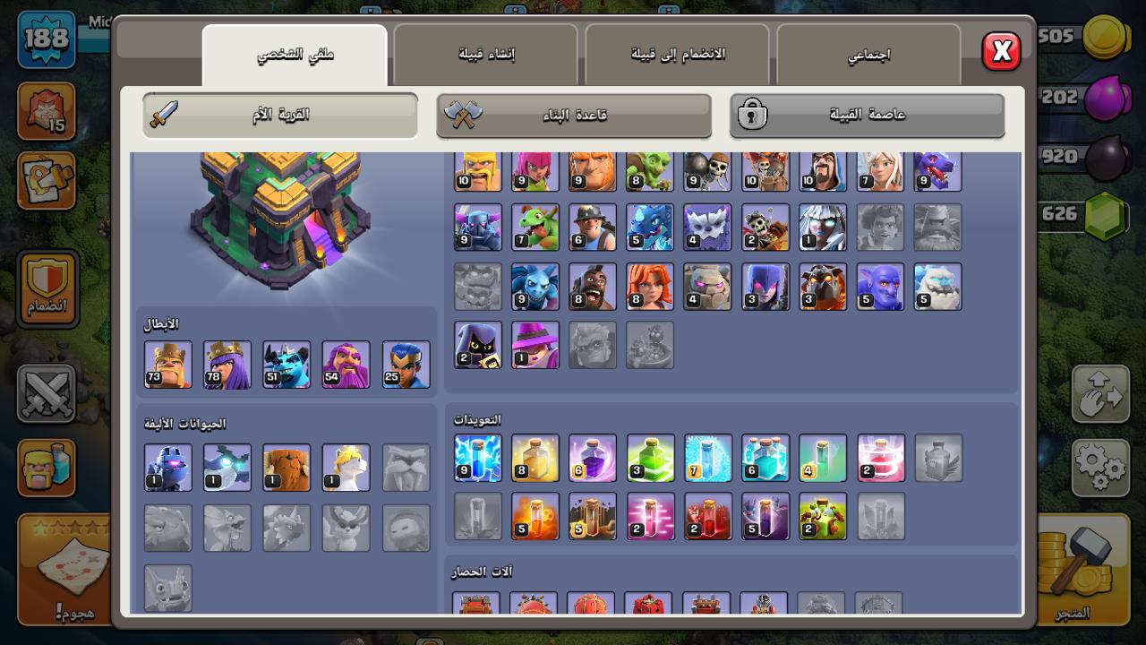 كلاش اوف كلانس تاون هول 9 ماكس كلها باقي الملك والملكة الملك ١٨ الملكة ١٩ الجواهر ٥٠١ قرية البنا...